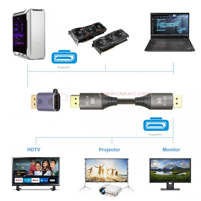 El ancho de banda de alta velocidad alcanza los 32,4 Gbps, DisplayPort 8K, el ancho de banda alcanza los 32,4 Gbps, transmisión de alta velocidad sin pérdida de señal.