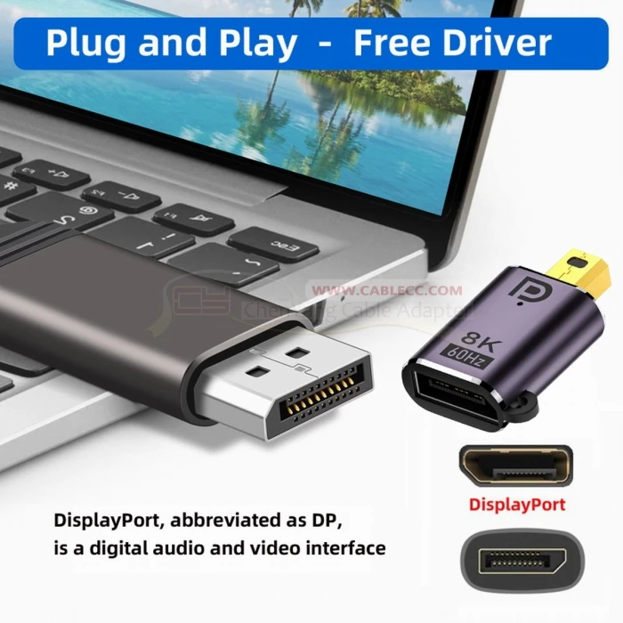 Mini DisplayPort macho a adaptador hembra DP, compatible con alta resolución 8K 7680*4320