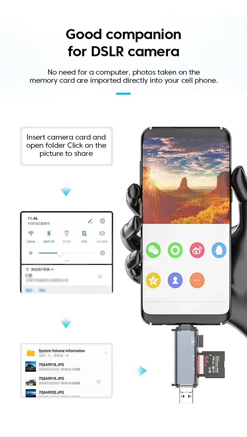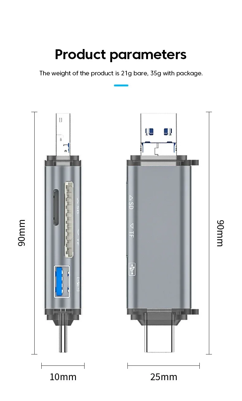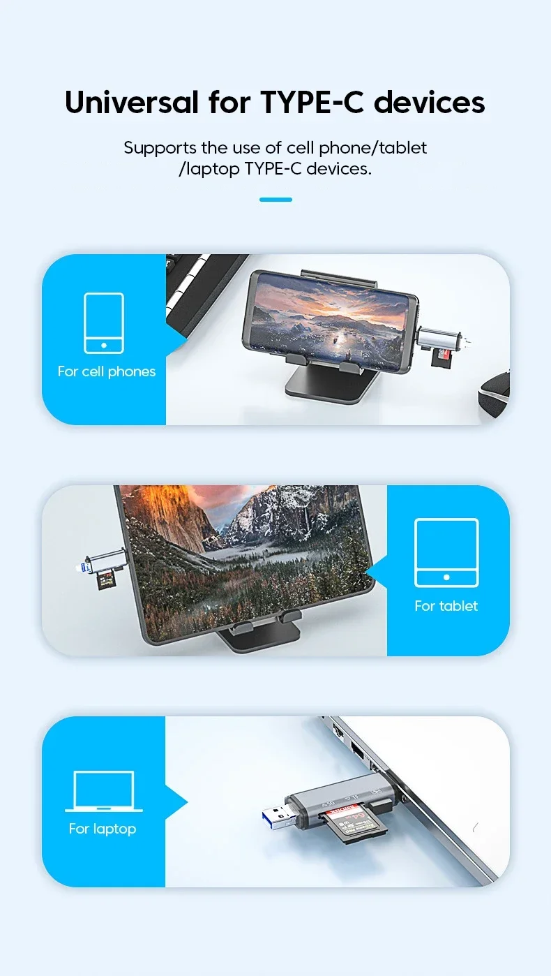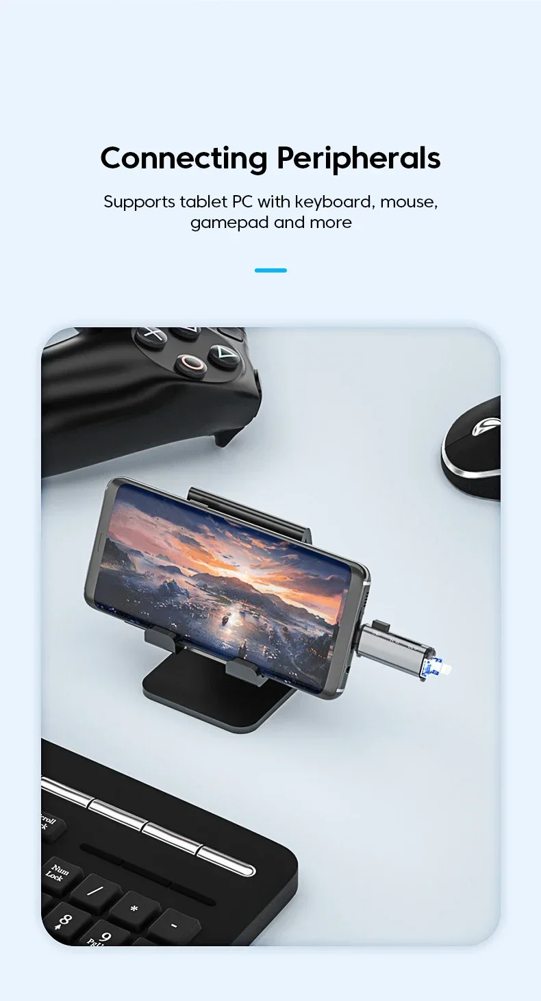 Adaptador 6 en 1 USB A Lightning A tipo C para iPhone, iPad, convertidor de Conector Micro A USB C OTG, lector de tarjetas TF SD