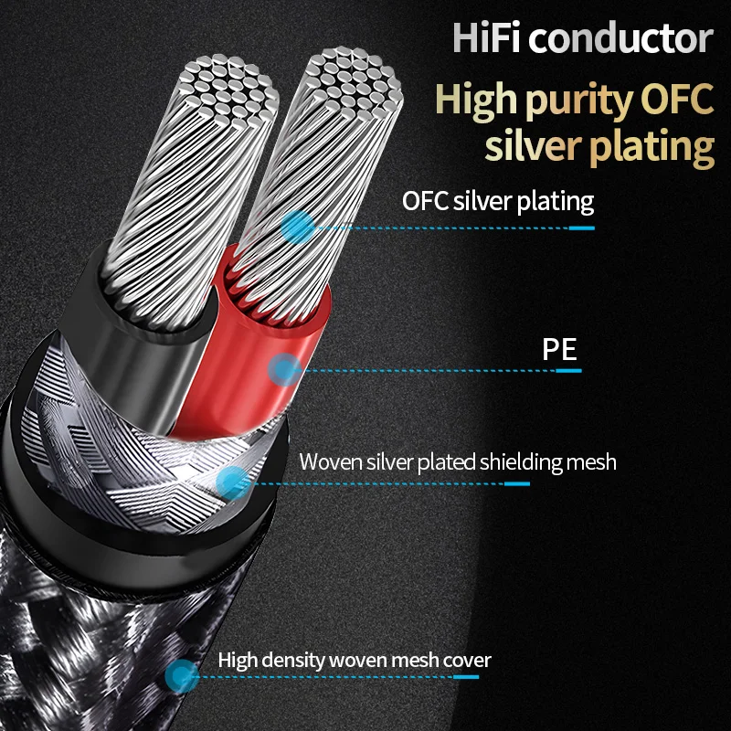 El conductor chapado en plata OFC (Oxígeno - Libre Cobre), después del recubrimiento, es plateado - blanco y brillante.Presenta baja resistencia interna, baja pérdida y mejor conductividad.La salida de sonido es transparente y natural.Equipado con una capa de blindaje de malla de cobre y múltiples capas de núcleo de cable protector, puede resistir interferencias de ondas electromagnéticas.La salida es clara y limpia, con una calidad de sonido transparente y delicada.