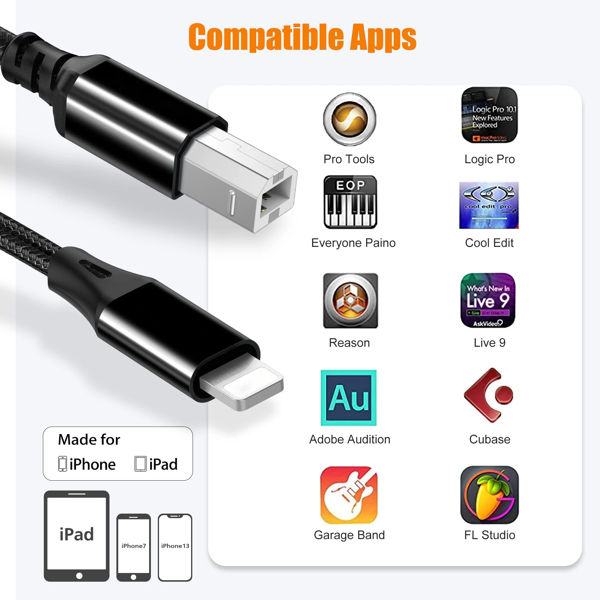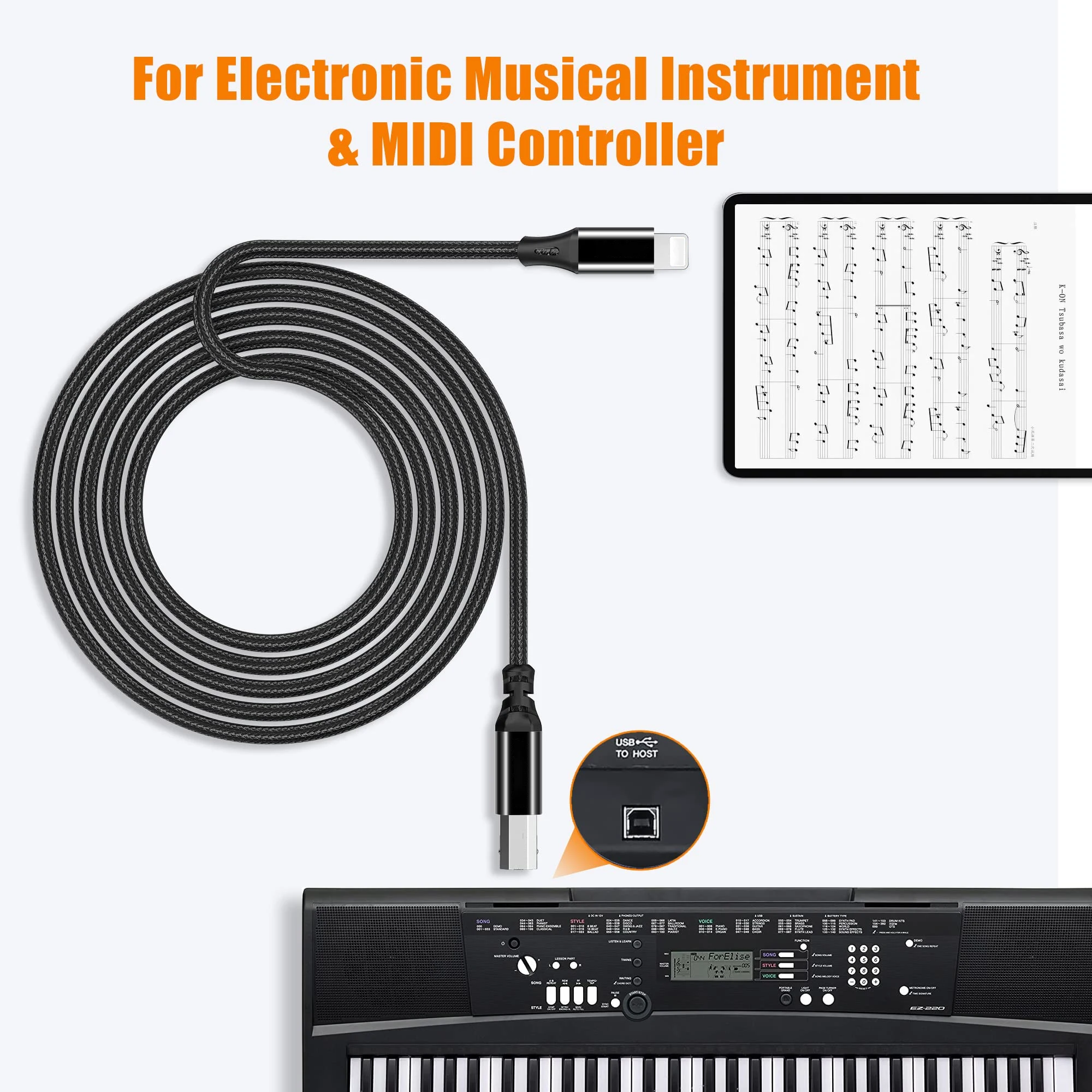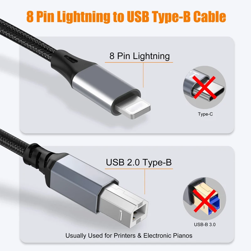 ⭕[Plug & Play]Estas interfaces Lightning a cables MIDI USB-B son plug & play, no se requieren controladores.Simplemente conecte Lightning Male a una computadora portátil y un conector USB-B a dispositivos MIDI.Admite dispositivos de interfaz MIDI: batería electrónica, teclados MIDI, teclados, guitarras eléctricas, pianos digitales.