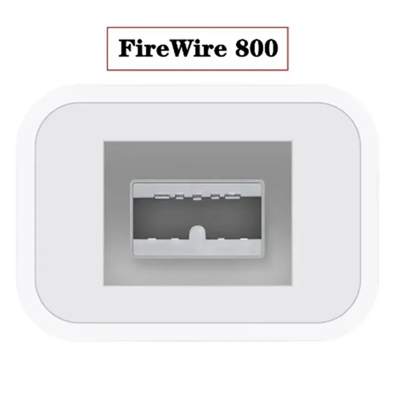 Adaptador FireWire para Apple Thunderbolt.En el último MacBook Air y Retina Display MacBook de Apple, se utiliza un diseño compacto para reducir algunas opciones de E/S menos utilizadas y ahorrar espacio, incluidas unidades ópticas y puertos como Ethernet y FireWire.Apple avanza su nueva tecnología Thunderbolt de alto rendimiento, que proporciona a los usuarios adaptadores Thunderbolt opcionales para remediar los puertos de E/S faltantes.