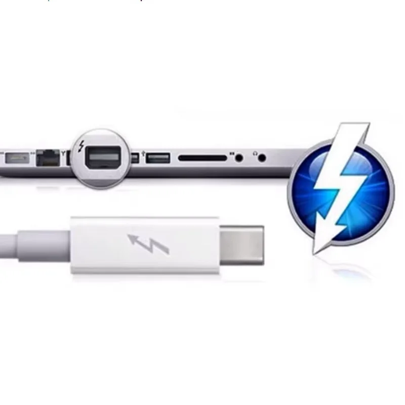 Thunderbolt es una nueva extensión de sistema para video de alto rendimiento y bus PCI-Express, lo que significa que puede acomodar muchos controladores diferentes para ampliar la funcionalidad del sistema.Esta función de adaptador no solo proporciona puertos faltantes, sino también la capacidad de llevar accesorios de tarjetas PCI-Express externos y se puede combinar con un concentrador de E/S como estación de acoplamiento para sistemas portátiles.