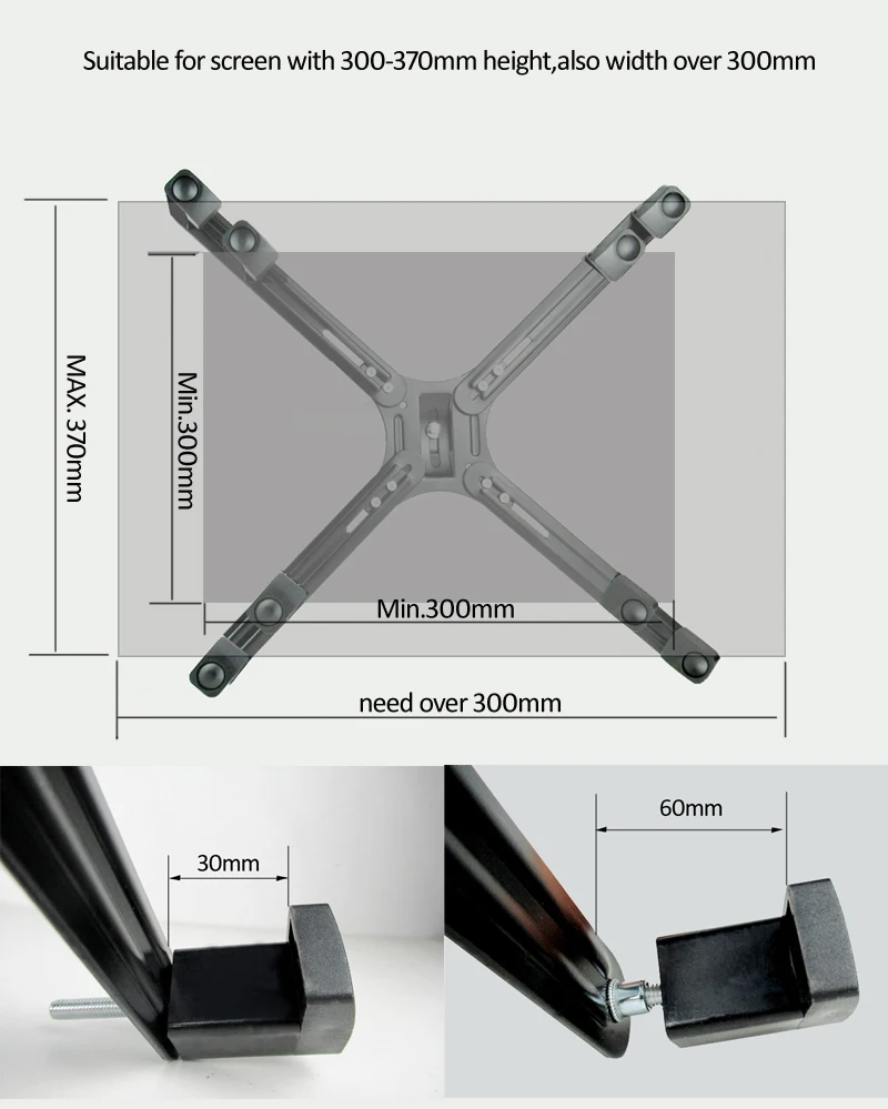 Longitud del monitor=300mm. Ancho del monitor: 300mm-370mm