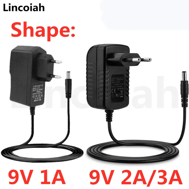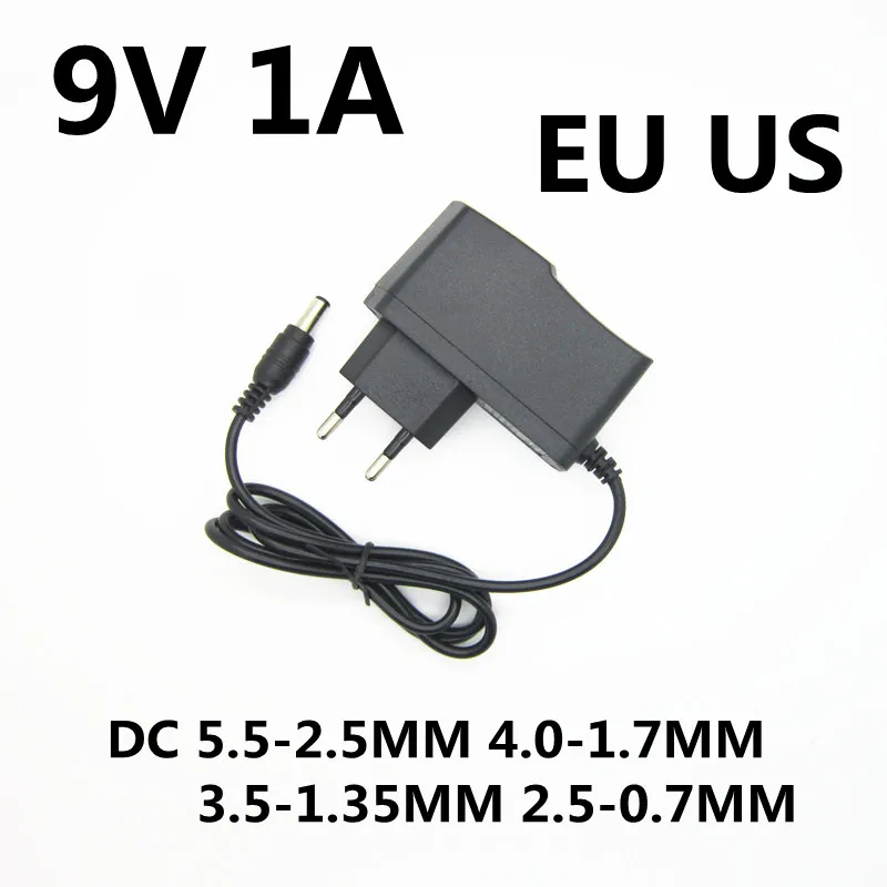 Comprar Adaptador AC / DC de 1 pieza, convertidor de corriente de 9 V, 0.5A, 1A, 2A, 3A, 100-240V, fuente de alimentación de cargador de 9 V, 1000MA, enchufe europeo y estadounidense