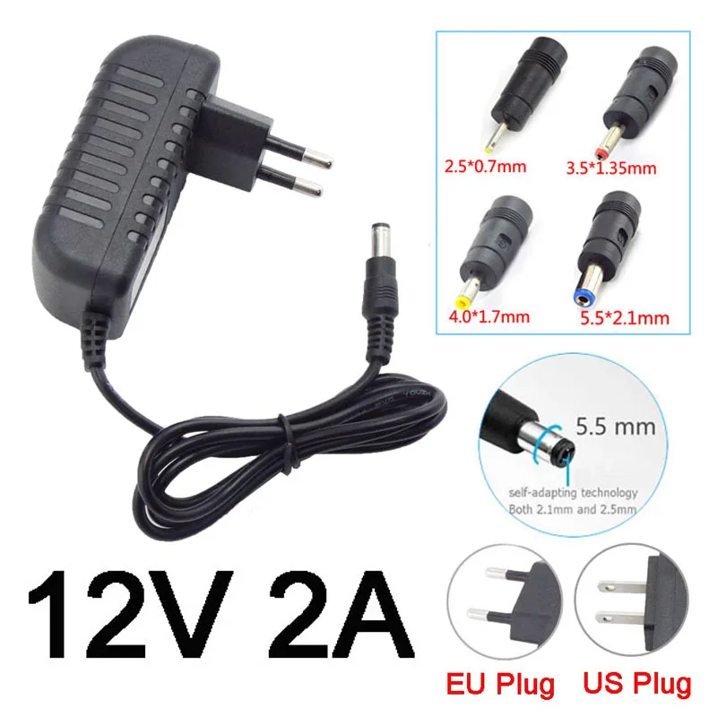 Adaptador AC DC 5,5*2,1mm 4,0*1,7mm 3,5*1,35mm 2,5*0,7mm convertidor de enchufe DC 12V 2A AC 100-240V cargador de fuente de alimentación