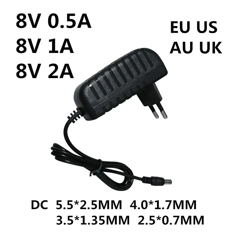 Comprar Adaptador AC/DC AC 100-240V DC 8 V 0.5A 1A 2A AC 100-240V adaptador de corriente 8 V Volt Charger power Supply EU US AU UK