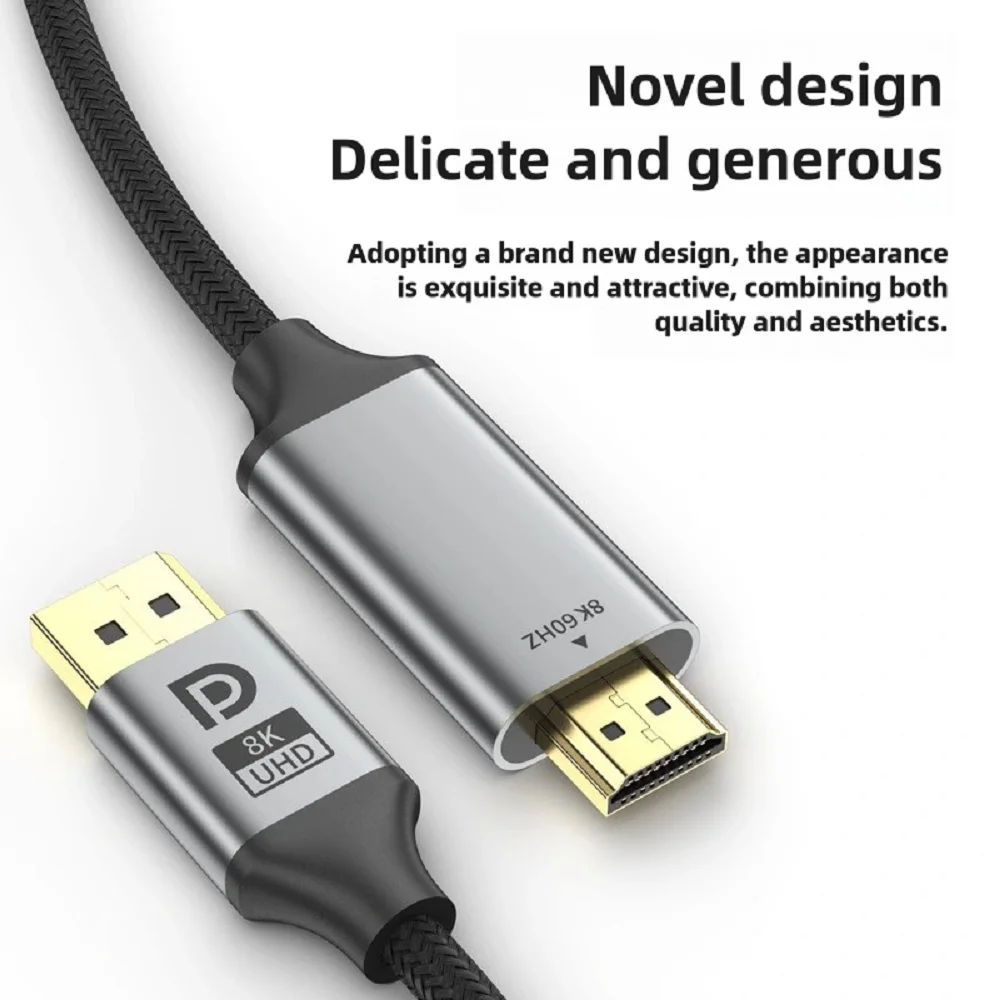 【Thoughtful Design + Anti-Interference】This dp to hdmi-compatible cable features a non-locking design to avoid damaging your device when pulling out your graphics card or other DisplayPort source devices. The cable is made of 28AWG tinned copper with triple shielding to ensure stable signal transmission without worrying about splash screen, ghosting and audio/video sync. One-piece aluminum alloy + nylon braid + 24K gold-plated connectors for stable heat dissipation and extended product life