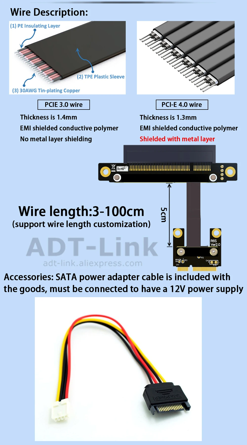 Longitud del cable:3 ~ 100 cm, la longitud se puede personalizar,