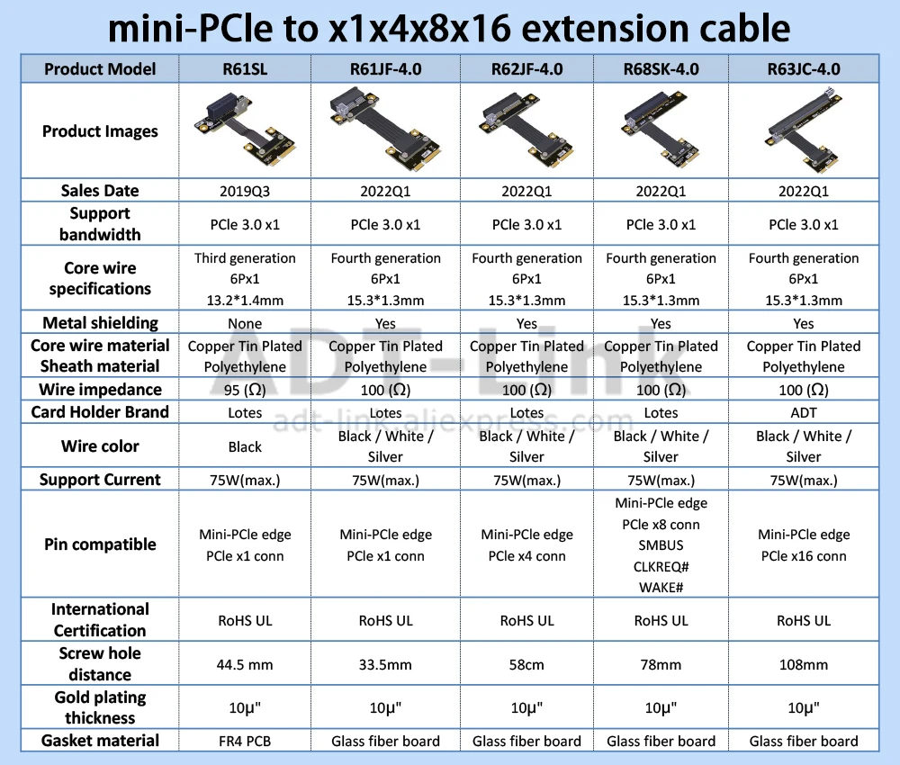 Comprar Adaptador ADT Mini-PCIe a PCIe X1x4x8x16, Cable de extensión Riser para tarjeta PCIe RAID NVMe SSD/tarjeta LAN/tarjeta de captura a MPCIe