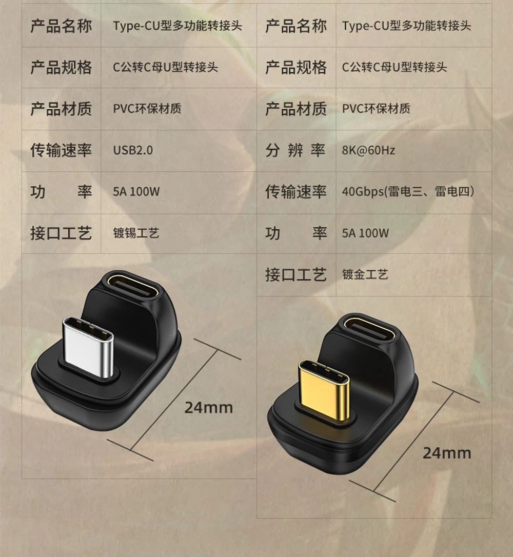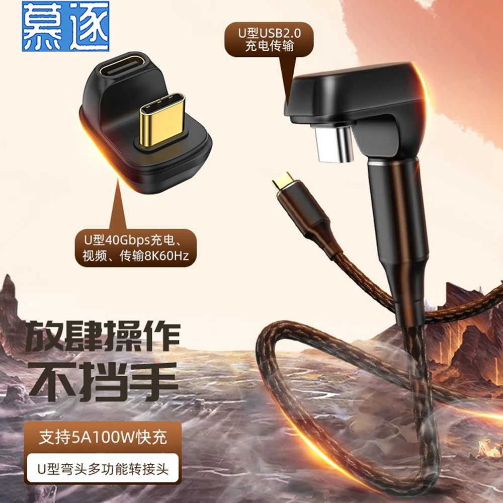 Comprar Adaptador de ángulo de 180 grados Usb C, convertidor Thunderbolt 3 4 tipo C macho a hembra Pd 100w 8k 60hz para tableta y teléfono inteligente, 40gbps