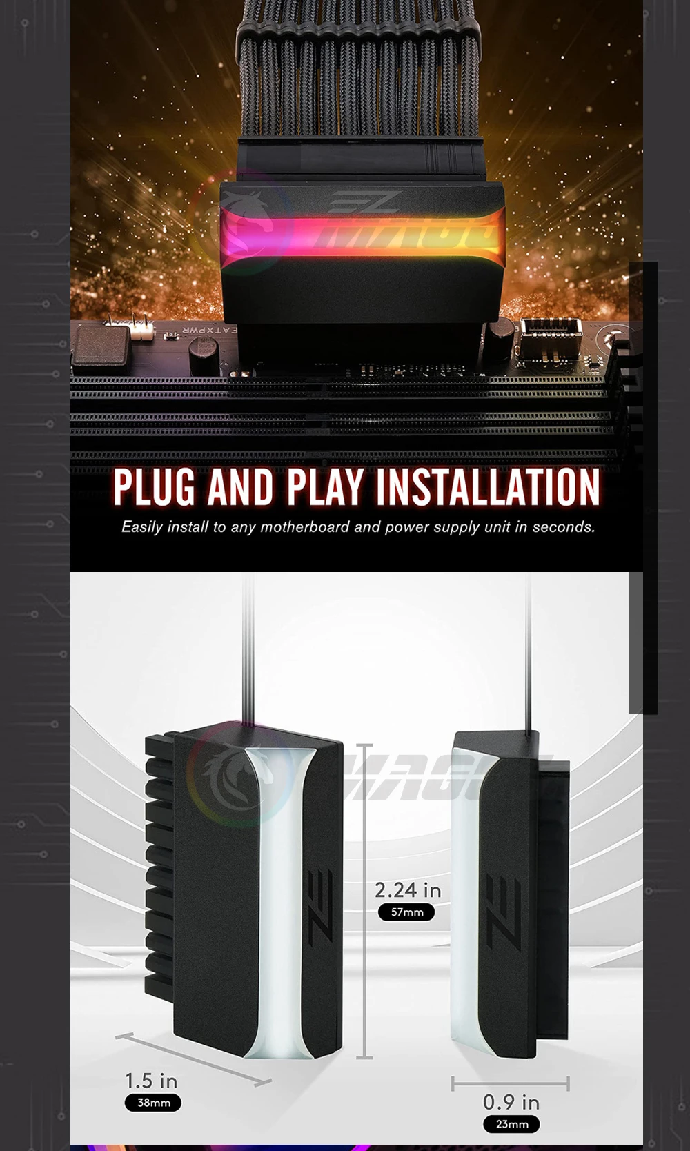 Adaptador de ángulo de 90 ° para ordenador, conector PSU ATX de 24 Pines, cabezal de dirección, gestión de cableado más inteligente y limpio, sincronización M/B 5V ARGB