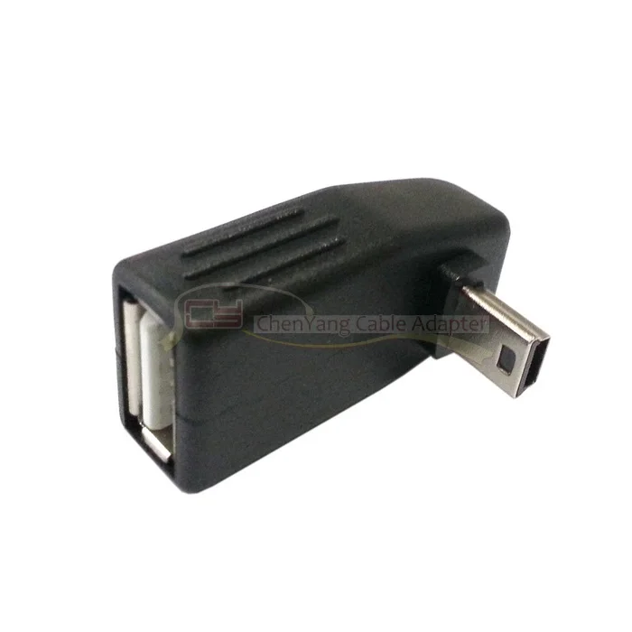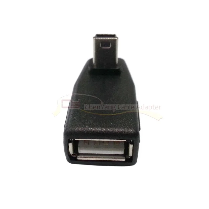 90 grados Anlgled OTG USB hembra a Mini adaptador macho de 5 pines para tableta AUX de coche