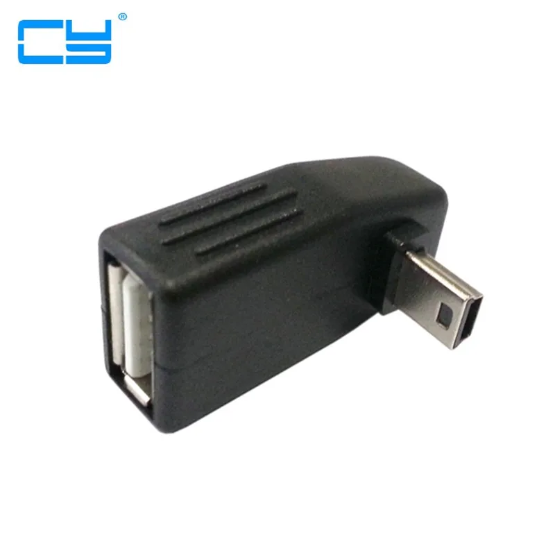 90 grados Anlgled OTG USB hembra a Mini adaptador macho de 5 pines para tableta AUX de coche