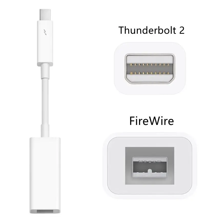 Adaptador FireWire para Apple Thunderbolt.En el último MacBook Air y Retina Display MacBook de Apple, se utiliza un diseño compacto para reducir algunas opciones de E/S menos utilizadas y ahorrar espacio, incluidas unidades ópticas y puertos como Ethernet y FireWire.Apple avanza su nueva tecnología Thunderbolt de alto rendimiento, que proporciona a los usuarios adaptadores Thunderbolt opcionales para remediar los puertos de E/S faltantes.