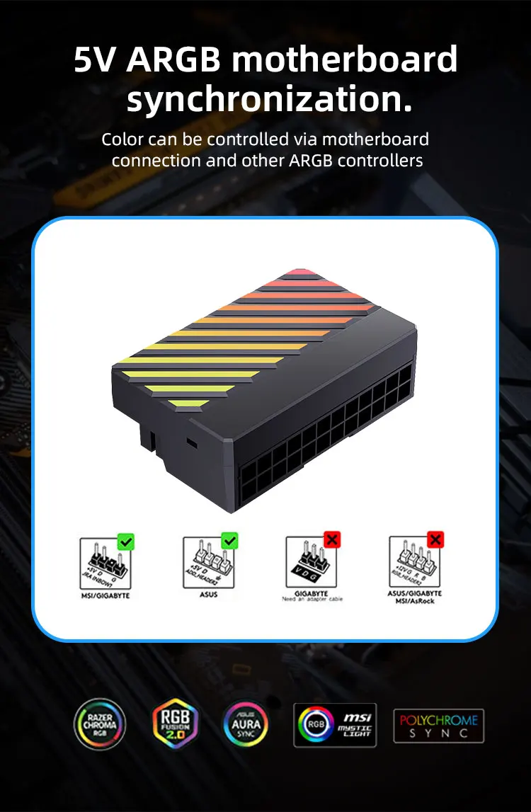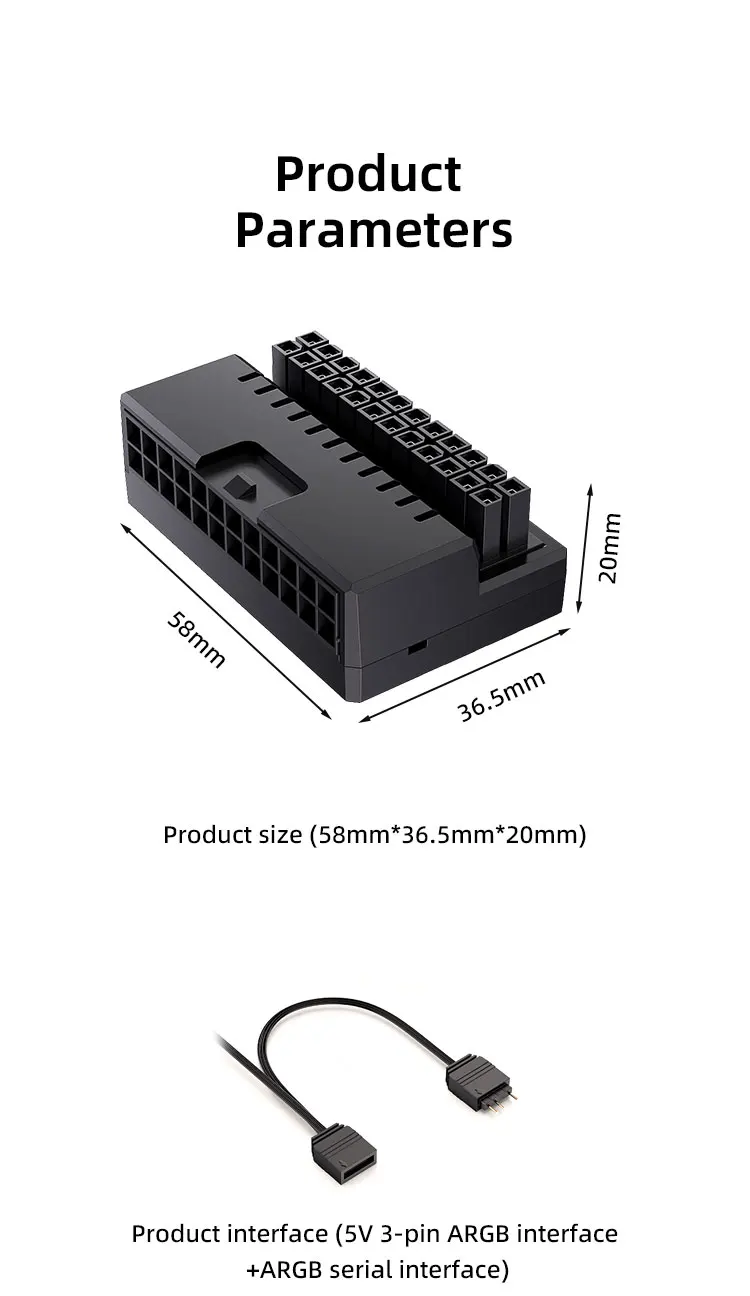 TEUCER ARGB Adaptador ATX de 24 pines 90 ° Adaptador convertidor de 24 pines adecuado para fuente de alimentación de placa base de 24 plN