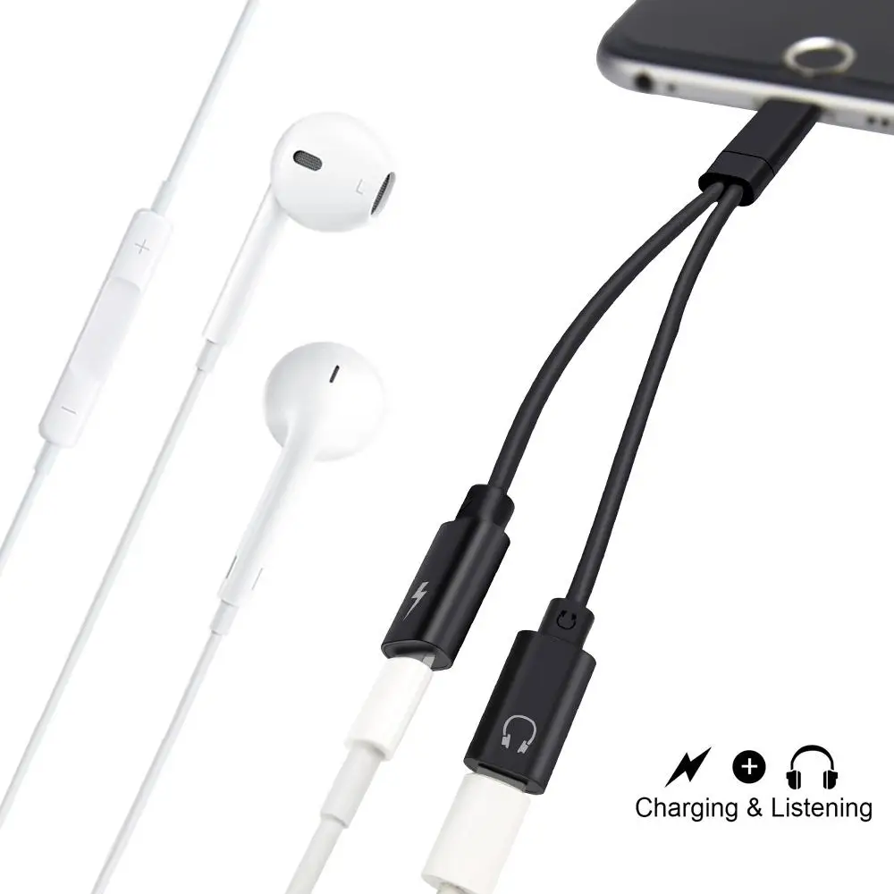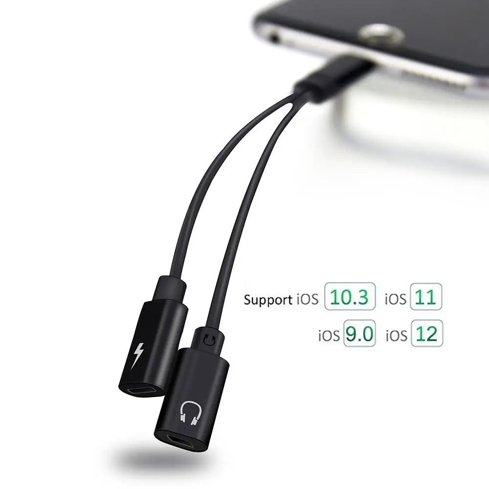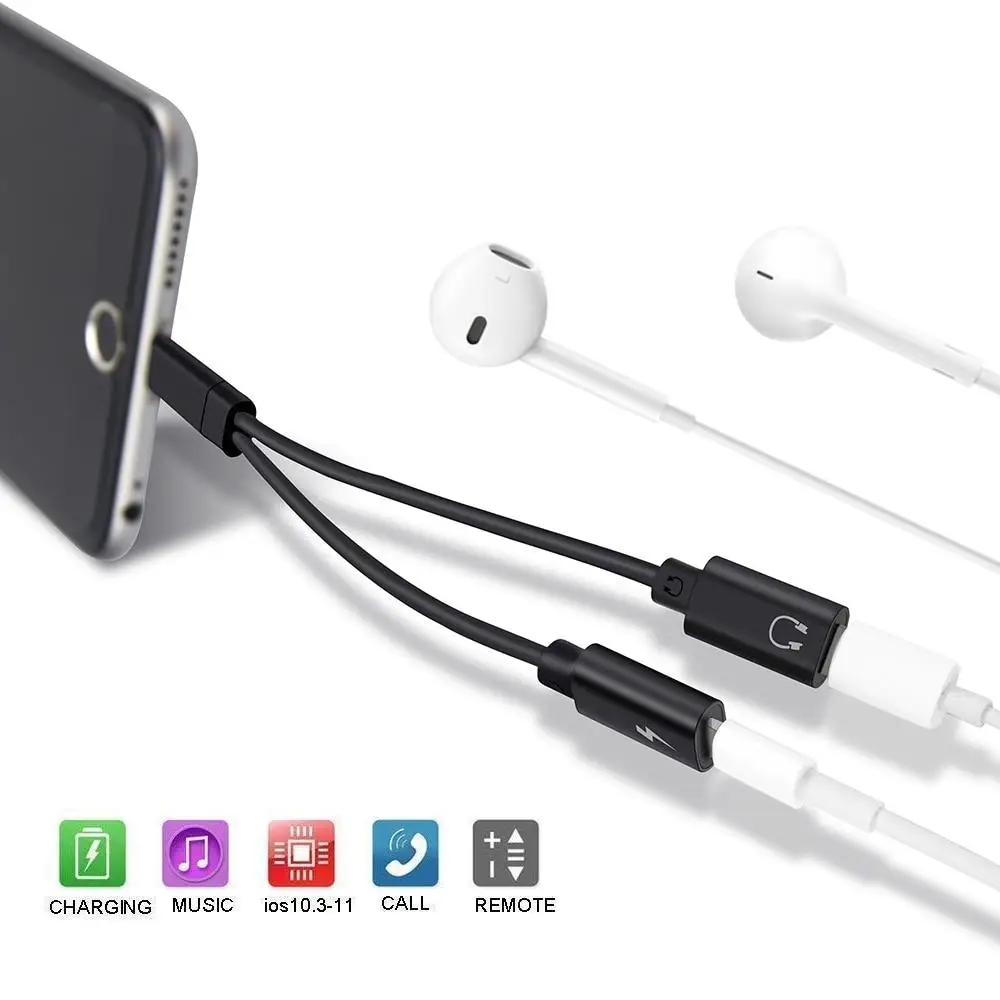 Comprar Adaptador de Audio 2 en 1, cable cargador de música Dual para IOS, convertidor de auriculares para Iphone 8, 7, 6 Plus, X, XS, Max, XR