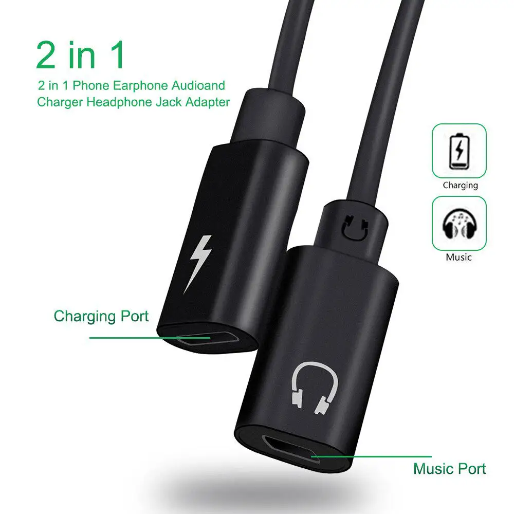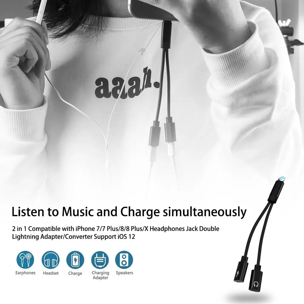 Comprar Adaptador de Audio 2 en 1, cable cargador de música Dual para IOS, convertidor de auriculares para Iphone 8, 7, 6 Plus, X, XS, Max, XR