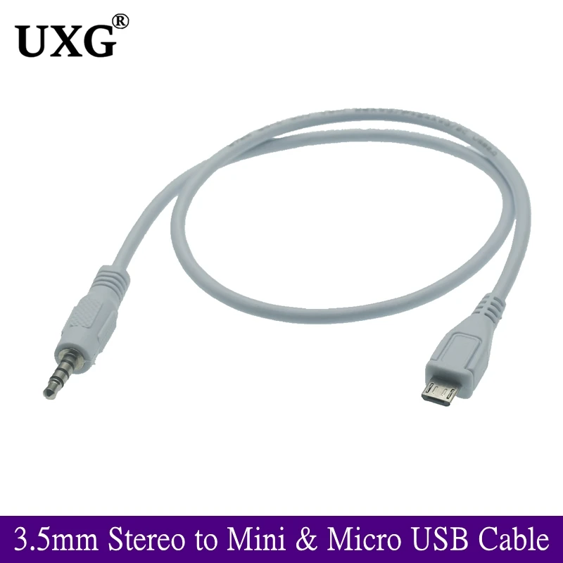 Comprar Adaptador de audio de 5 pines para auriculares MP3 y MP4, Cable de conector de 3,5mm, macho estéreo, Micro y MINI USB, blanco, 50cm, 0,5 M