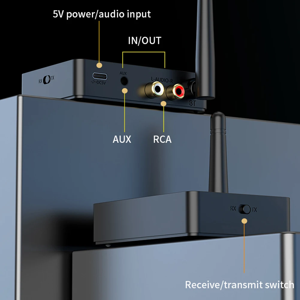 Comprar Adaptador de Audio 5,3 APTX/HD/LL, transmisor RECEPTOR ESTÉREO inalámbrico 2 en 1, Compatible con Bluetooth, AUX/RCA, 3,5mm, para TV y hogar