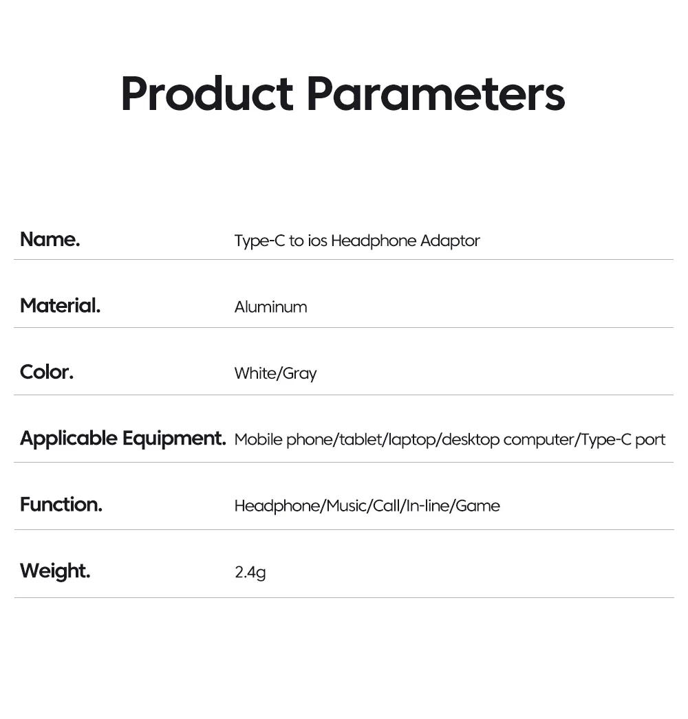 Nombre del producto: Adaptador de auriculares tipo C a Lightning