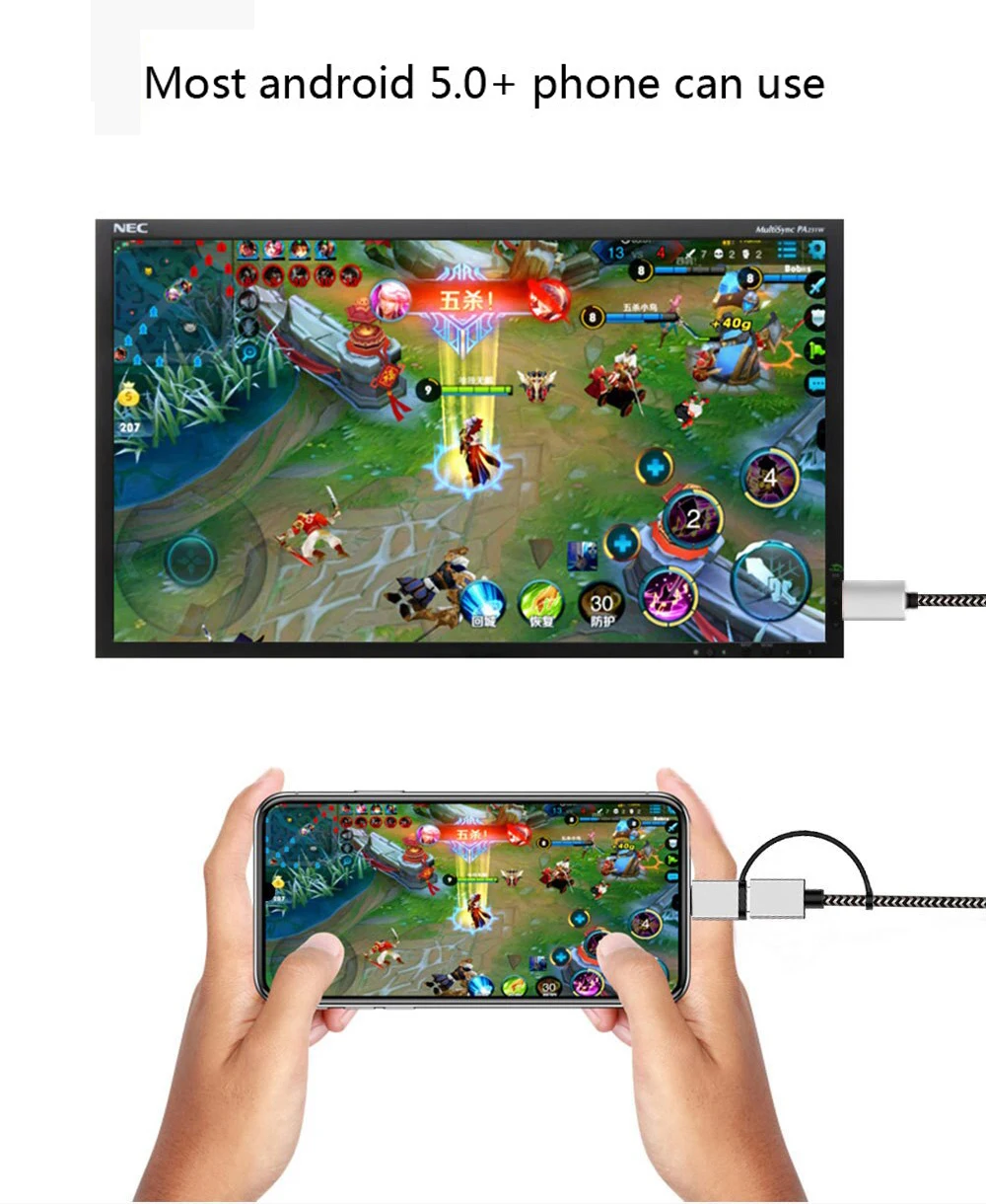 Con él, puede conectar un teléfono tipo C o un teléfono micro USB a un monitor de pantalla equipado con HDMI para disfrutar de una pantalla más grande