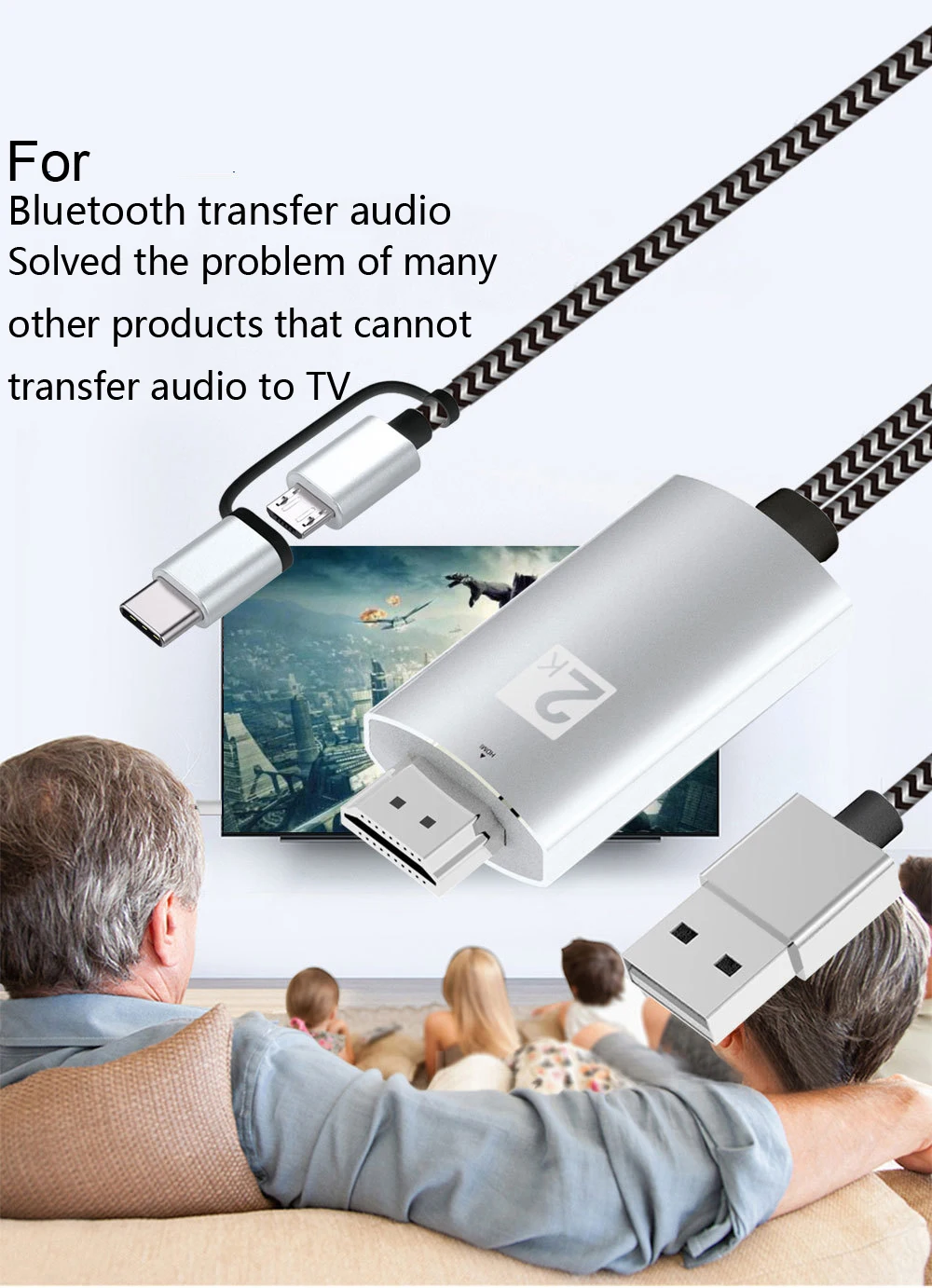 1 cable micro USB/tipo C a HDMI 2K con función Bluetooth
