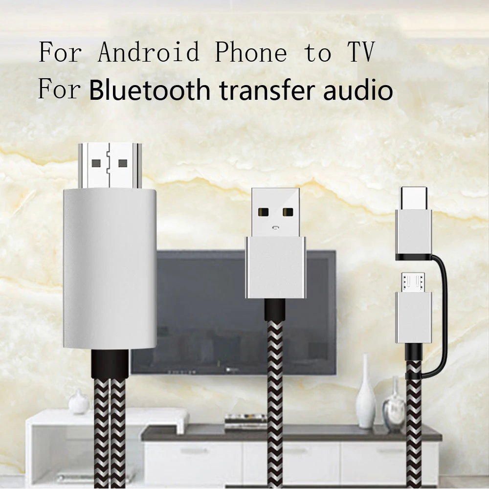 Comprar Adaptador de Audio con Bluetooth, Cable Micro USB HD tipo C, 2K, HDTV, Huawei P30, P40 Pro, Xiaomi, Samsung S20, S10, teléfono Android a TV