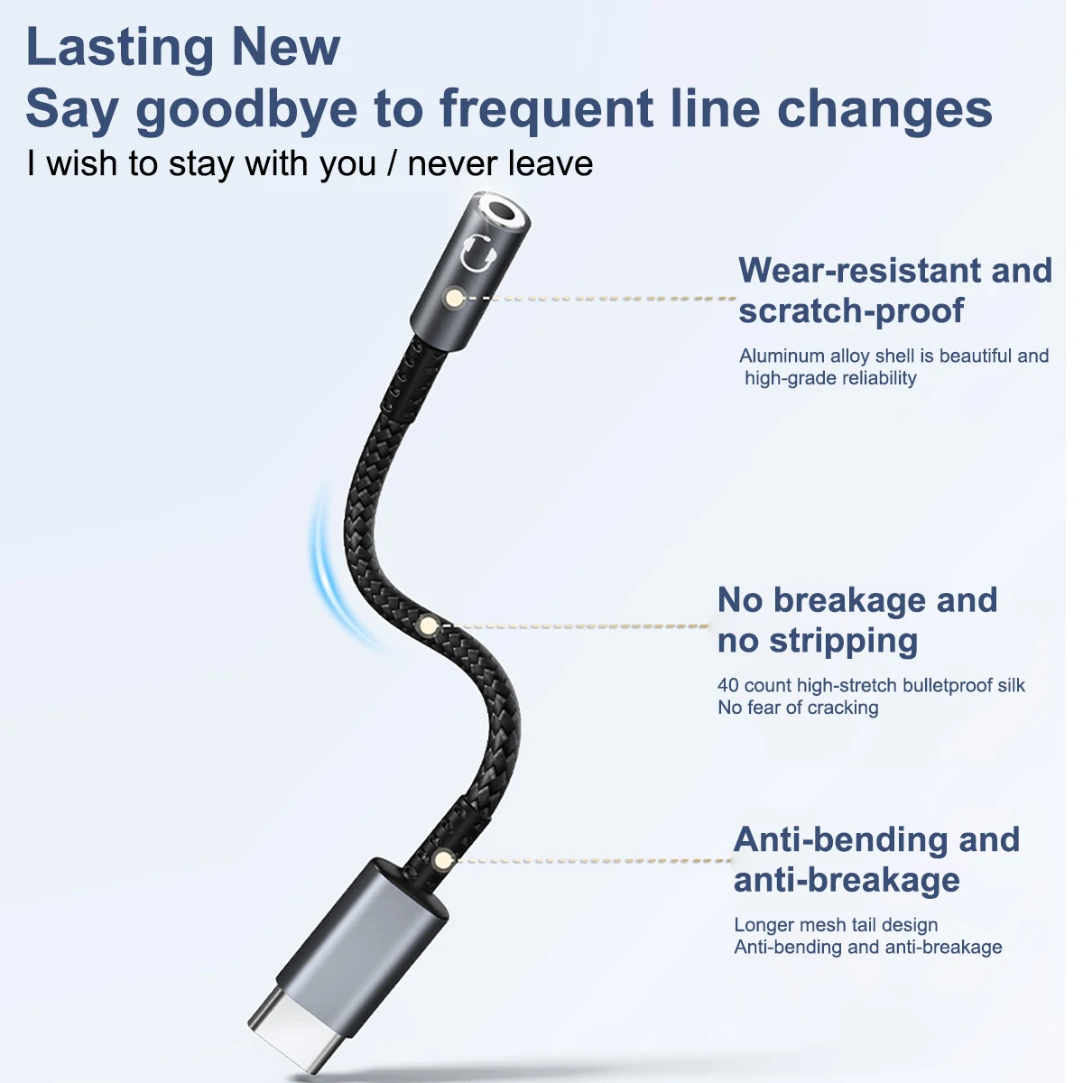 Comprar Adaptador de Audio Digital para Xiaomi Samsung Pixel USB tipo C a 3,5mm, convertidor tipo C DAC, Cable auxiliar de Audio Hi Fi