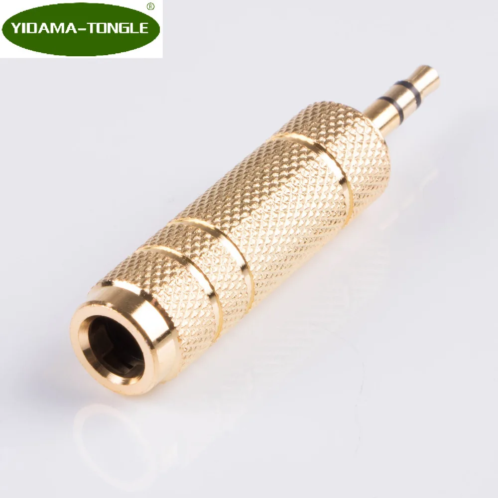 3 polos TRS 6,5mm enchufe hembra a 3,5mm enchufe macho adaptador de Audio estéreo Jack convertidor auricular auriculares micrófono 5 unids/lote