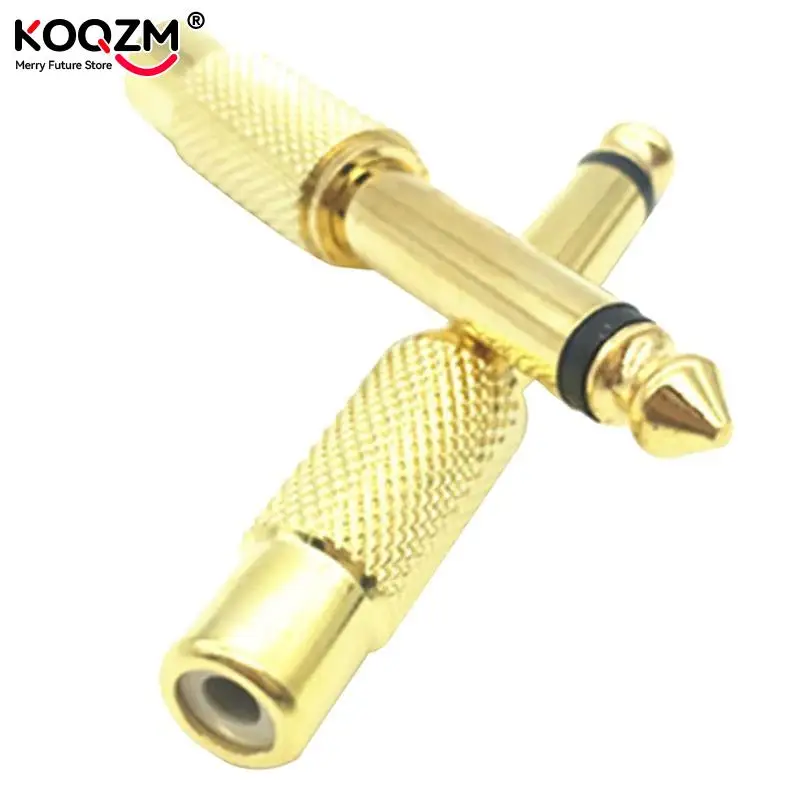 Comprar Adaptador de Audio estéreo chapado en oro, conector macho Mono de 6,35mm y 1/4 "a RCA hembra de 6,5mm, mezclador de sonido, 2 uds.
