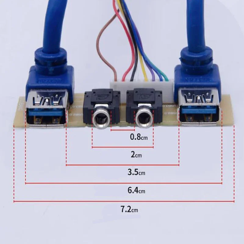Comprar Adaptador de Audio HD Dual USB 3,0 de 19 pines, interfaz en ángulo de 90 grados, Cable de Panel frontal del chasis del ordenador, 72mm, 3,5mm