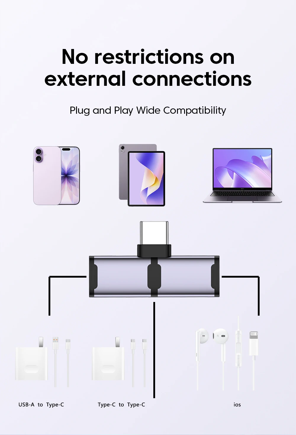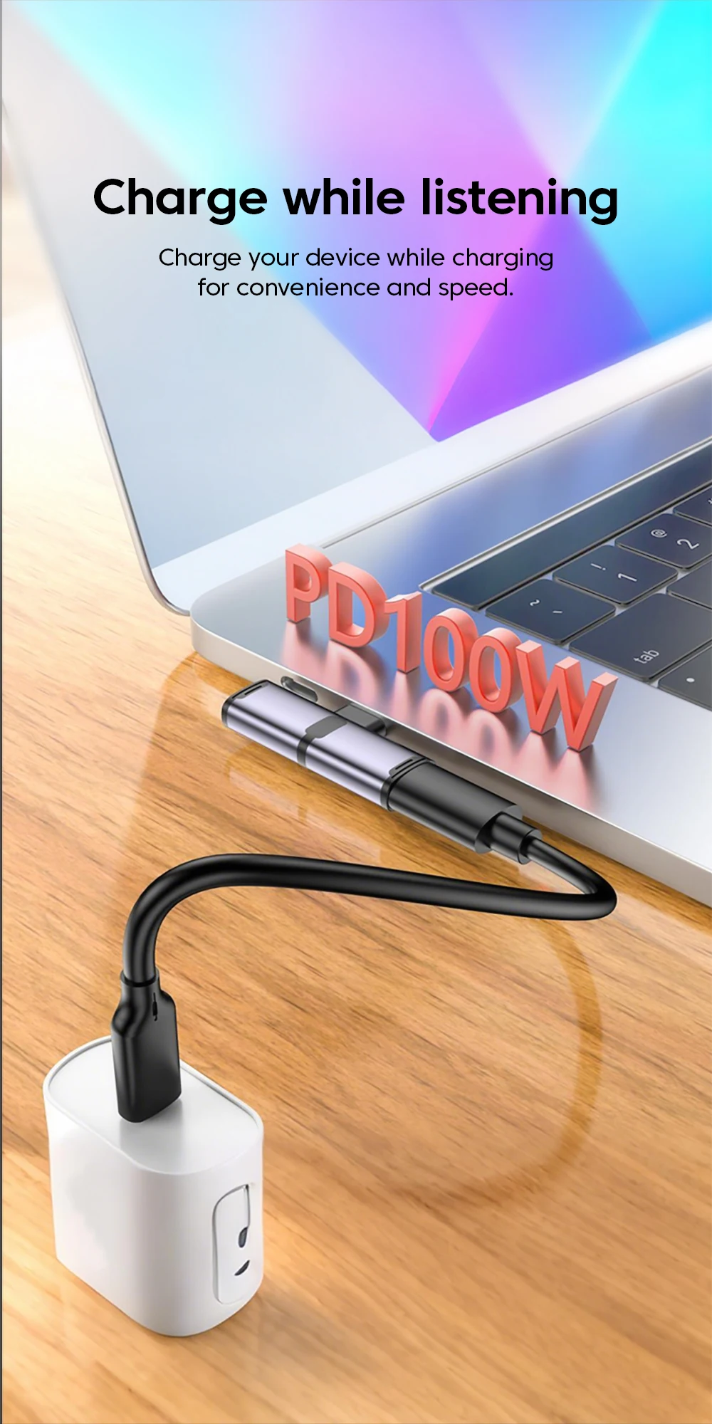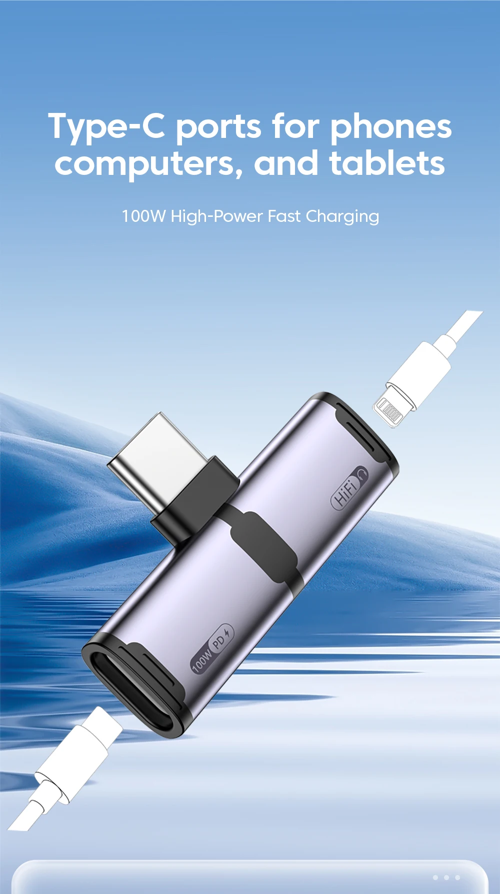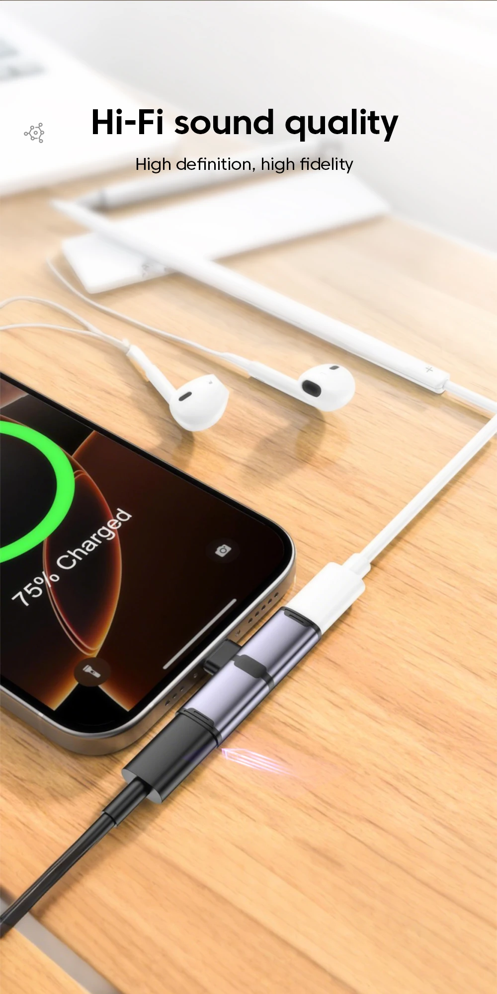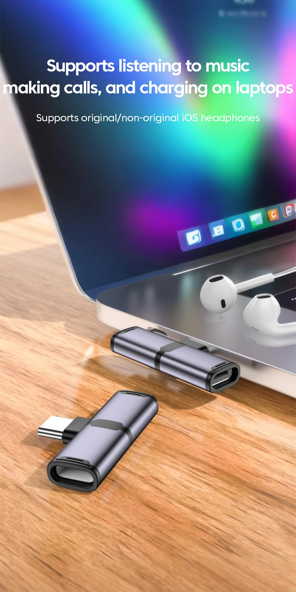 Adaptador de Audio Hifi para auriculares USB tipo C a ios 2 en 1, adaptador de carga rápida de 100W tipo c a tipo c para iPhone 15 16 17 iPad