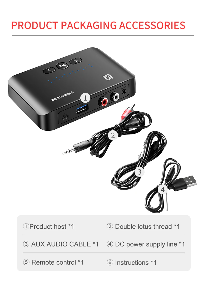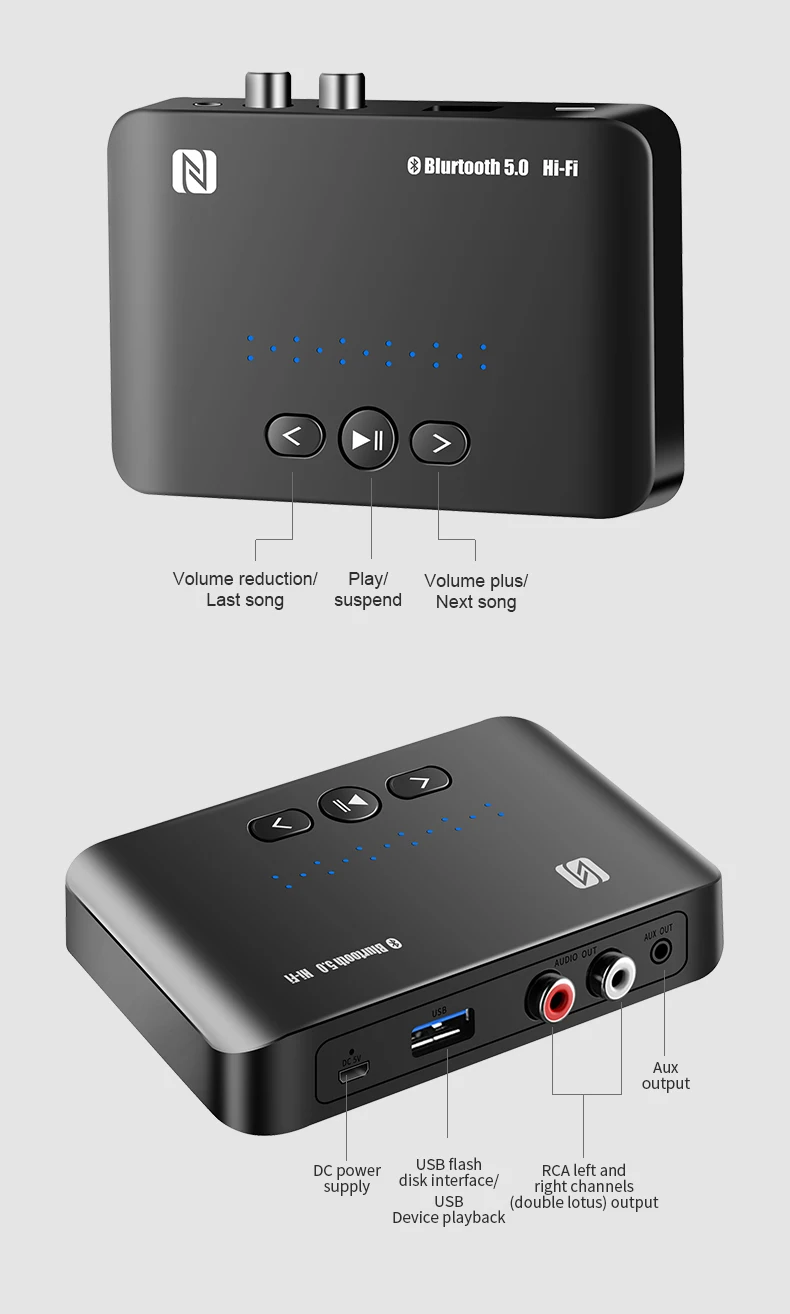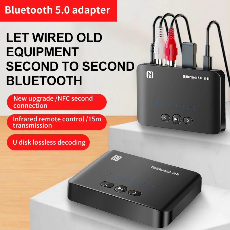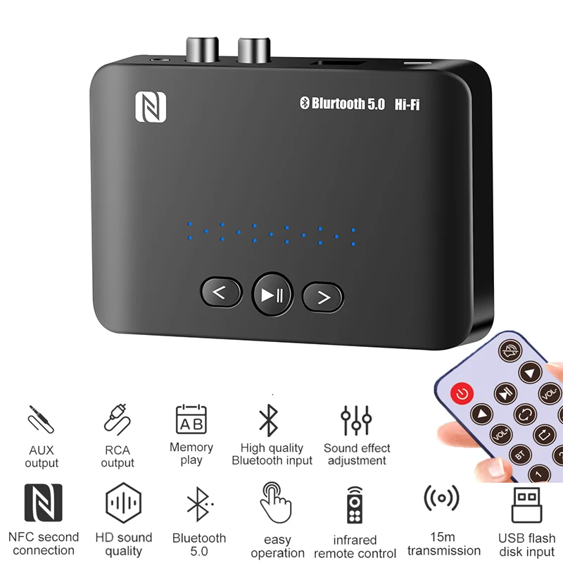 Comprar Adaptador de Audio inalámbrico para altavoz, receptor con Bluetooth 5,0, 3,5mm, AUX, RCA, HiFi, estéreo, USB, soporte NFC con Control remoto
