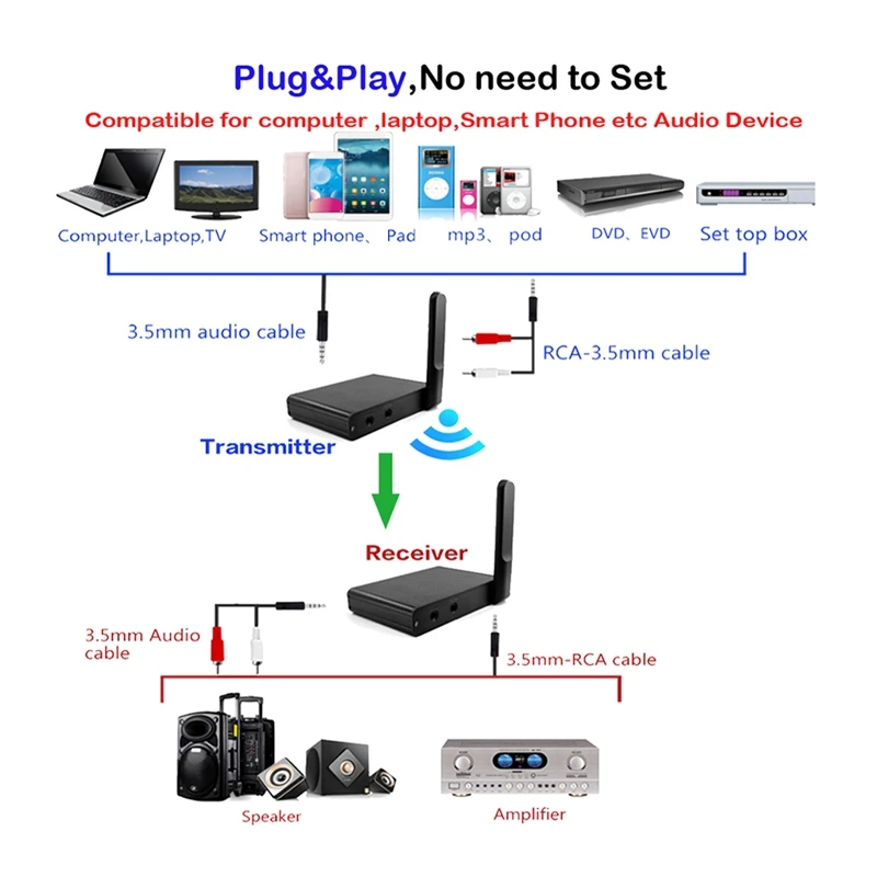 Comprar Adaptador de Audio inalámbrico Digital, transmisor y receptor Wifi de 2,4 Ghz, UHF, Hifi, con Cable de Audio de 3,5 Mm, 1 Juego