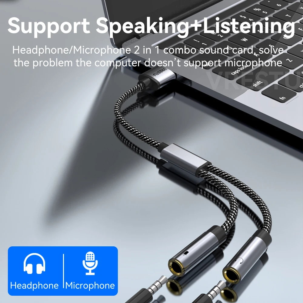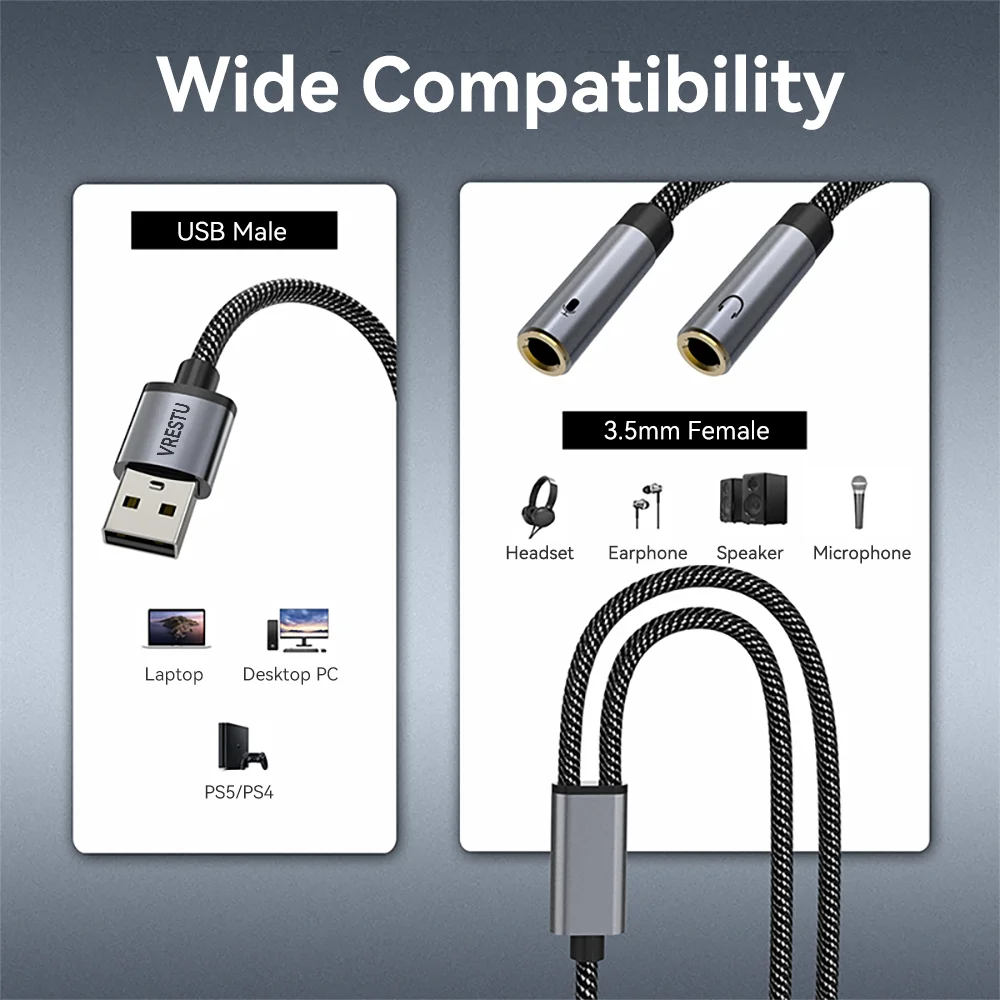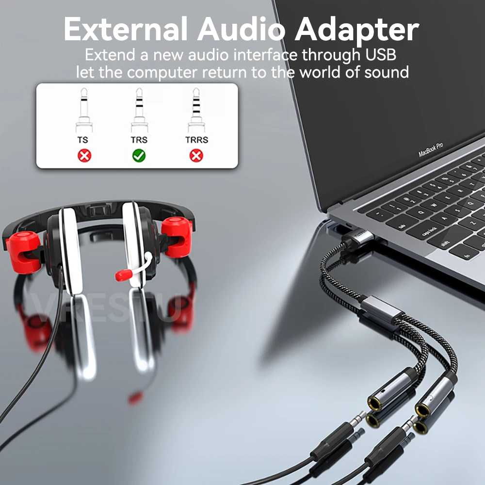 Comprar Adaptador de Audio USB a conector TRS de 3,5mm, tarjeta de sonido USB, Adaptador de sonido externo para ordenador de escritorio, PS5, portátil, micrófono y auriculares