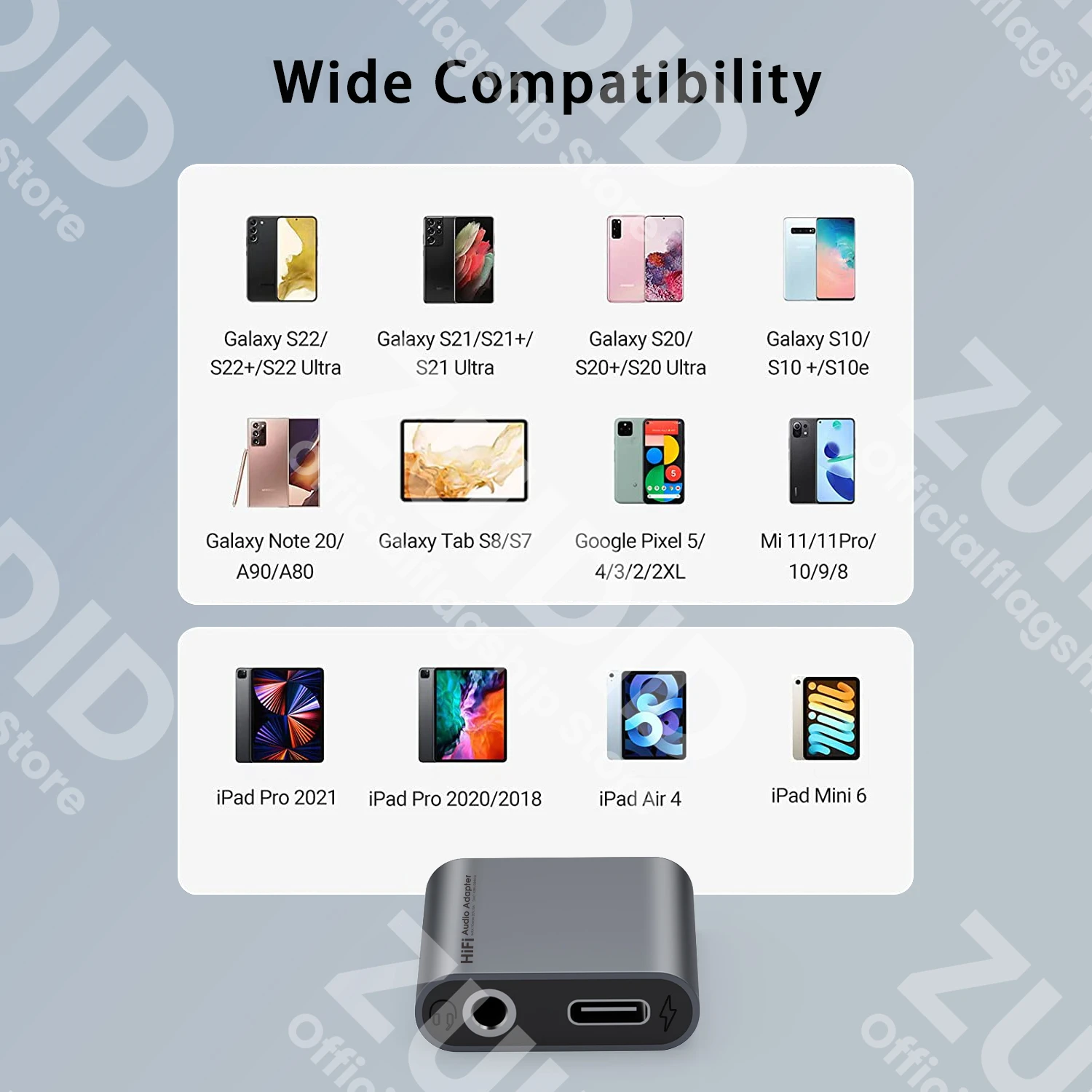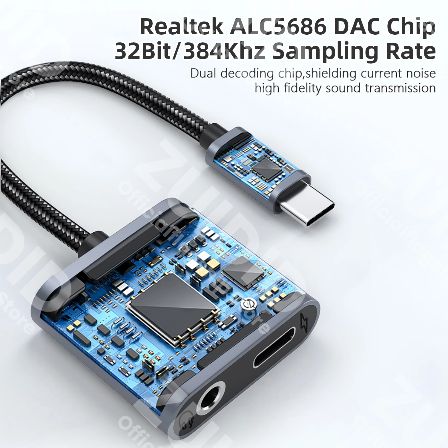 Comprar Adaptador de Audio USB C 2 en 1 a 3,5mm/tipo C, convertidor de auriculares auxiliar PD60W de carga rápida de 32 bits/384KHz, DAC, para iPad y Samsung