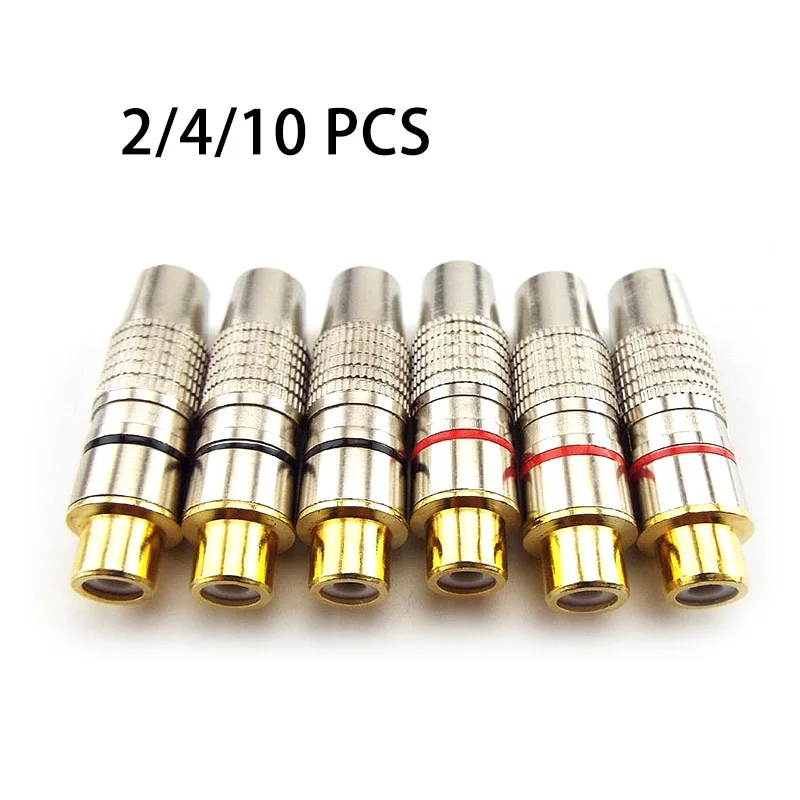 Comprar Adaptador de Audio y vídeo para Cable Coaxial, conector RCA hembra de 2/4/10 piezas, convertidor negro y rojo, chapado en oro