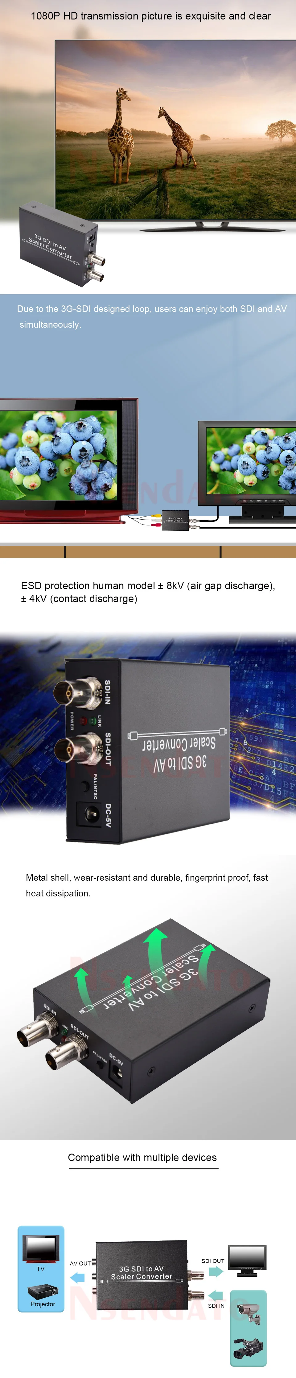 Comprar Adaptador de Audio y vídeo compuesto para cámara HDTV, convertidor SDI a AV RCA SDI 3G/HD/SD a L SDI/R RCA CVBS, Full HD 1080p