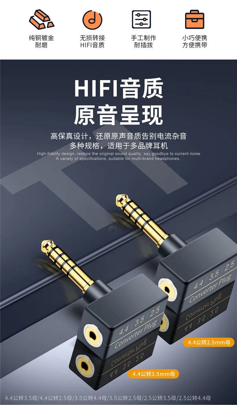 Nombre del producto: 2,5mm 3,5mm 4,4mm macho a 2,5 3,5 4,4 hembra convertidor Adaptador de audio