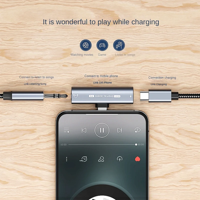 Nombre: adaptador de auriculares DAC USB C a USB C/3,5mm 2 en forma de T