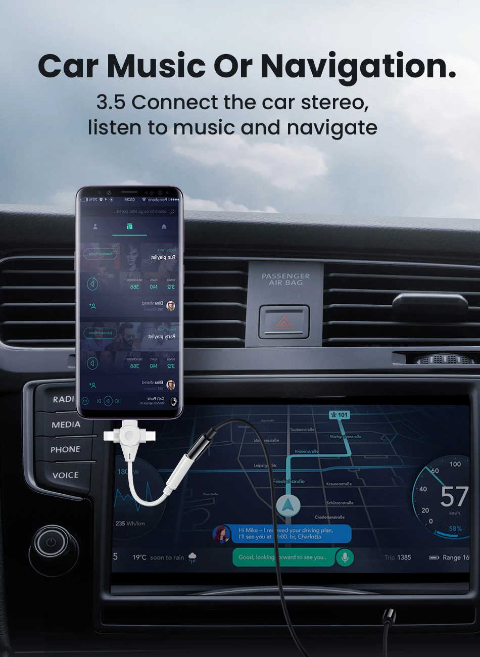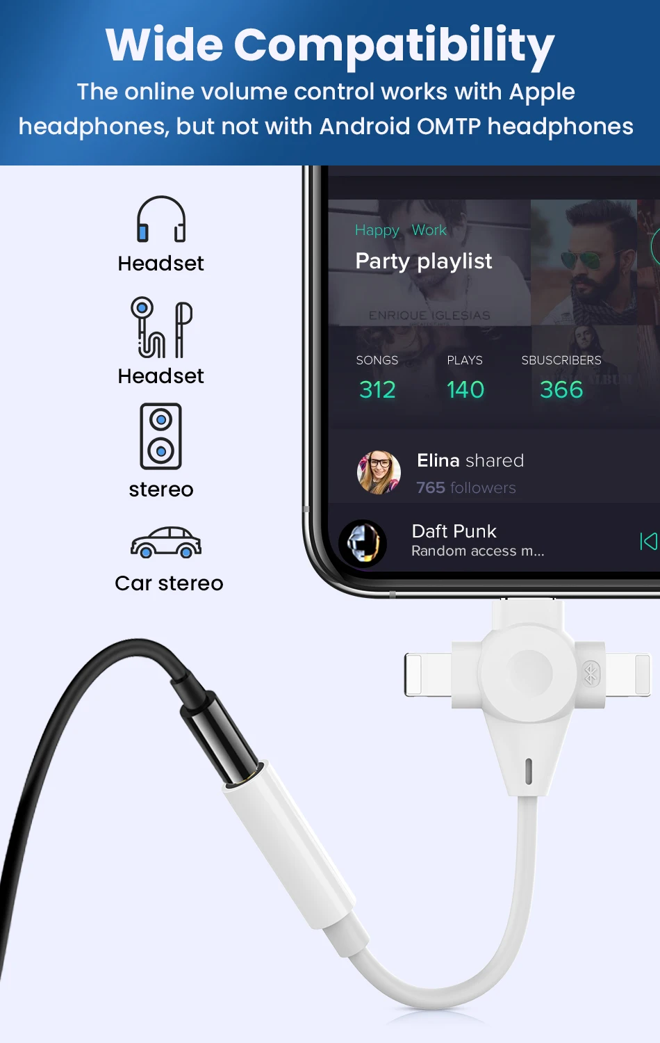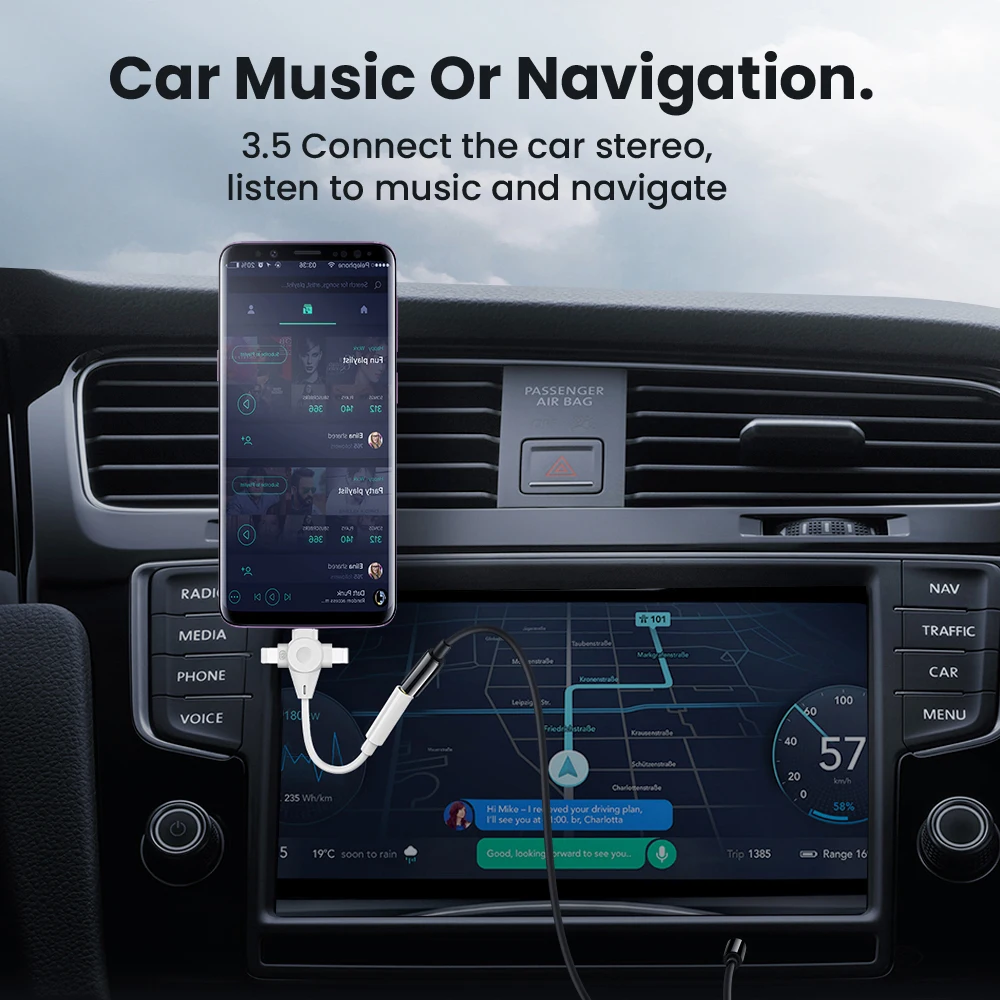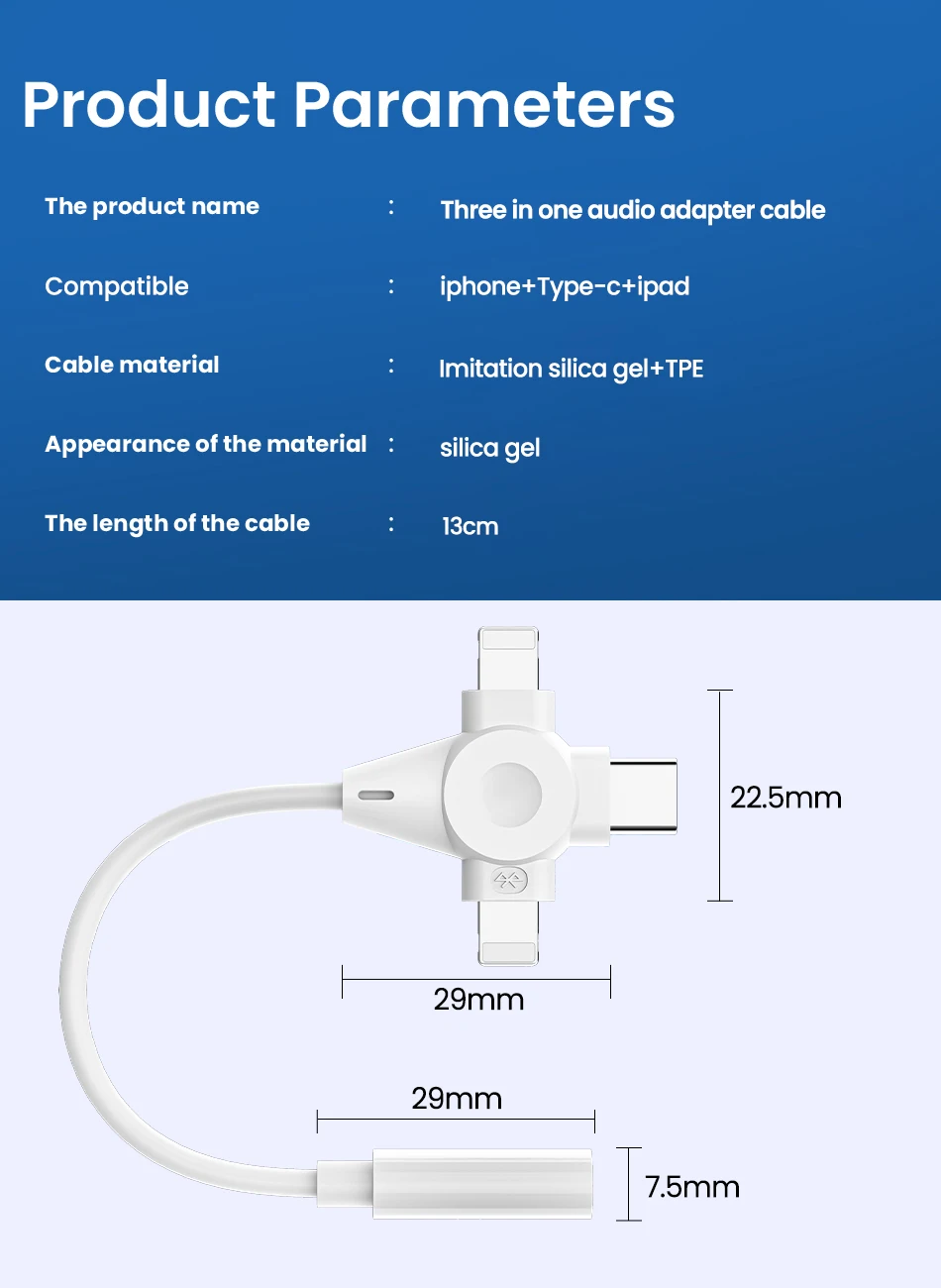 Comprar Adaptador de auriculares 3 en 1, Cable auxiliar de 8 pines a 3,5mm para iPhone 14, 13, 12, 11, tipo C a 3,5mm, extensión de Audio para Xiaomi y Samsung