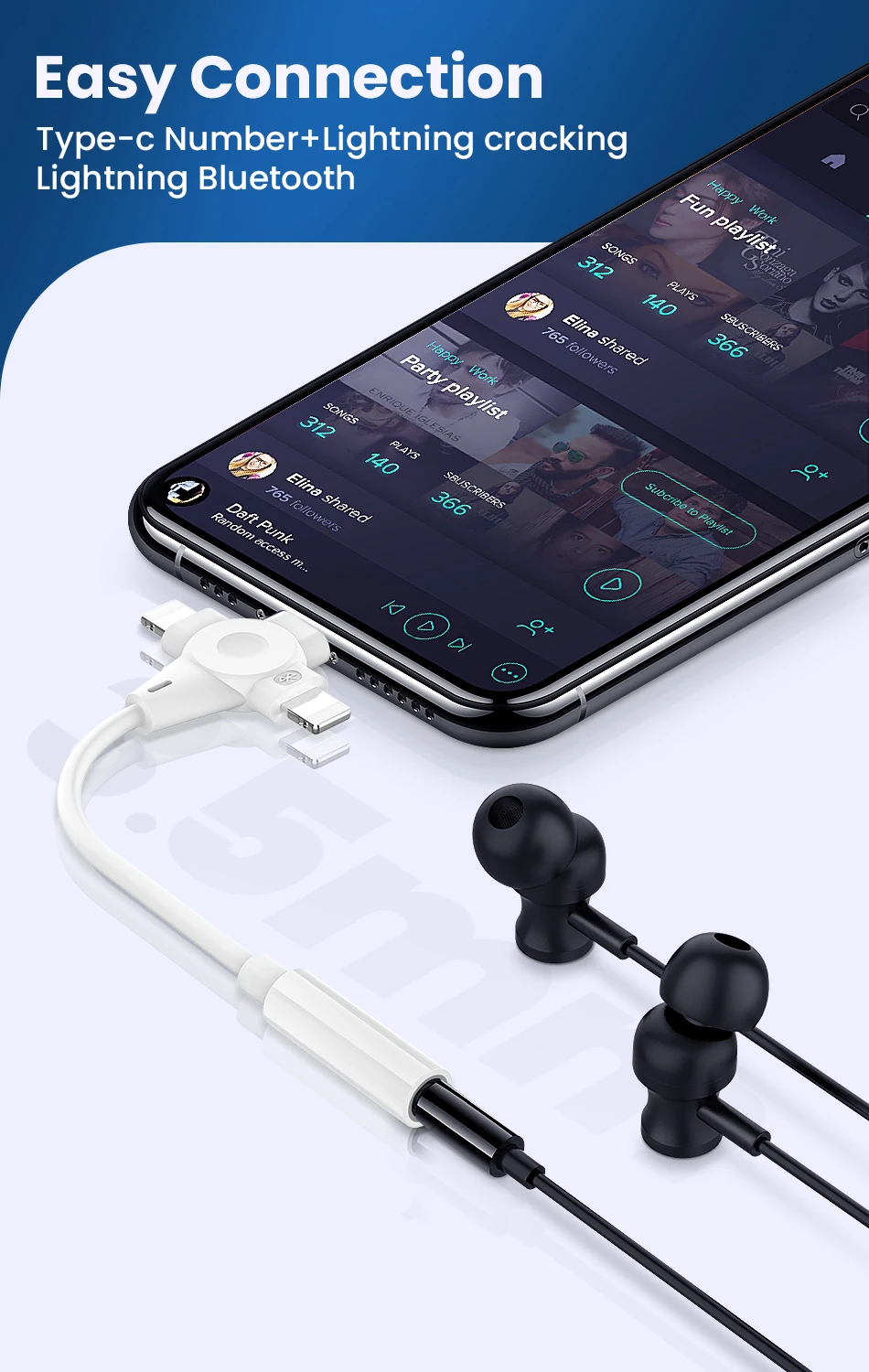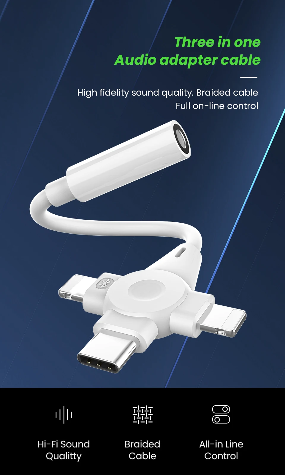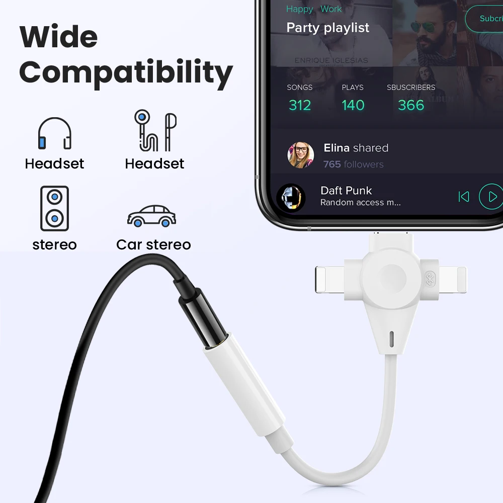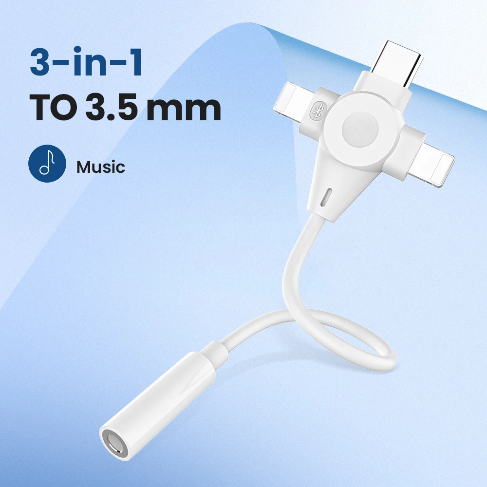 Adaptador de auriculares 3 en 1, Cable auxiliar de 8 pines a 3,5mm para iPhone 14, 13, 12, 11, tipo C a 3,5mm, extensión de Audio para Xiaomi y Samsung