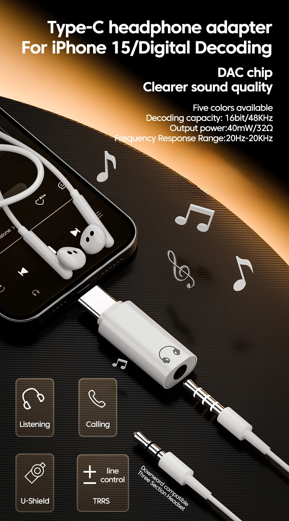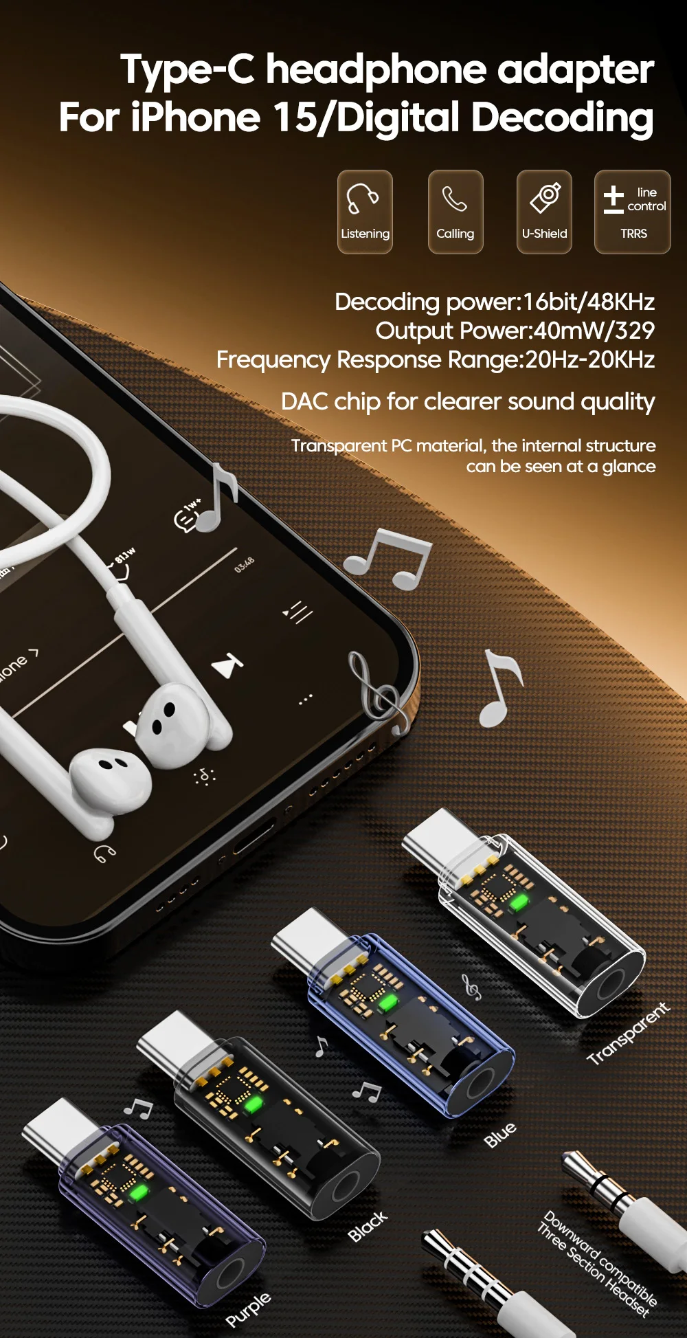 Comprar Adaptador de auriculares de Audio Digital de 3,5mm a tipo C adecuado para iphone 15 Samsung HD decodificación Audio adaptador de teléfono