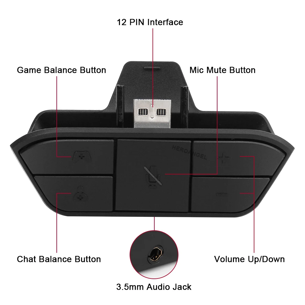 Adaptador de auriculares estéreo, controlador de equilibrio de Audio, adaptador convertidor de auriculares, conector de Audio de 3,5mm para controlador de juego Xbox OneAdaptador de auriculares estéreo Micrófono de audio Convertidor de auriculares Ajuste Controlador de equilibrio de audio Adaptador de auriculares Convertidor de adaptador de auriculares Conector de audio de 3,5 mm para controlador de juego inalámbrico Xbox OneCaracterística:[Adaptación de audio perfecta]Experimente una conectividad de audio sin complicaciones con el adaptador de auriculares estéreo Original para Xbox One.No es necesario conectar nada a su consola o TV/receptor.El chat requiere un micrófono y este adaptador permite utilizar la mayoría de los auriculares estéreo para juegos con cable en Xbox One.[Cómodo ajuste de audio]Ajuste fácilmente el audio del chat sin quitarse las manos del controlador.El adaptador de auriculares del controlador cuenta con botones para el volumen del micrófono, el volumen de los auriculares, invitar a amigos y más.Simplemente conecte el adaptador de auriculares incluido a su controlador y conecte sus auriculares para una fácil operación.