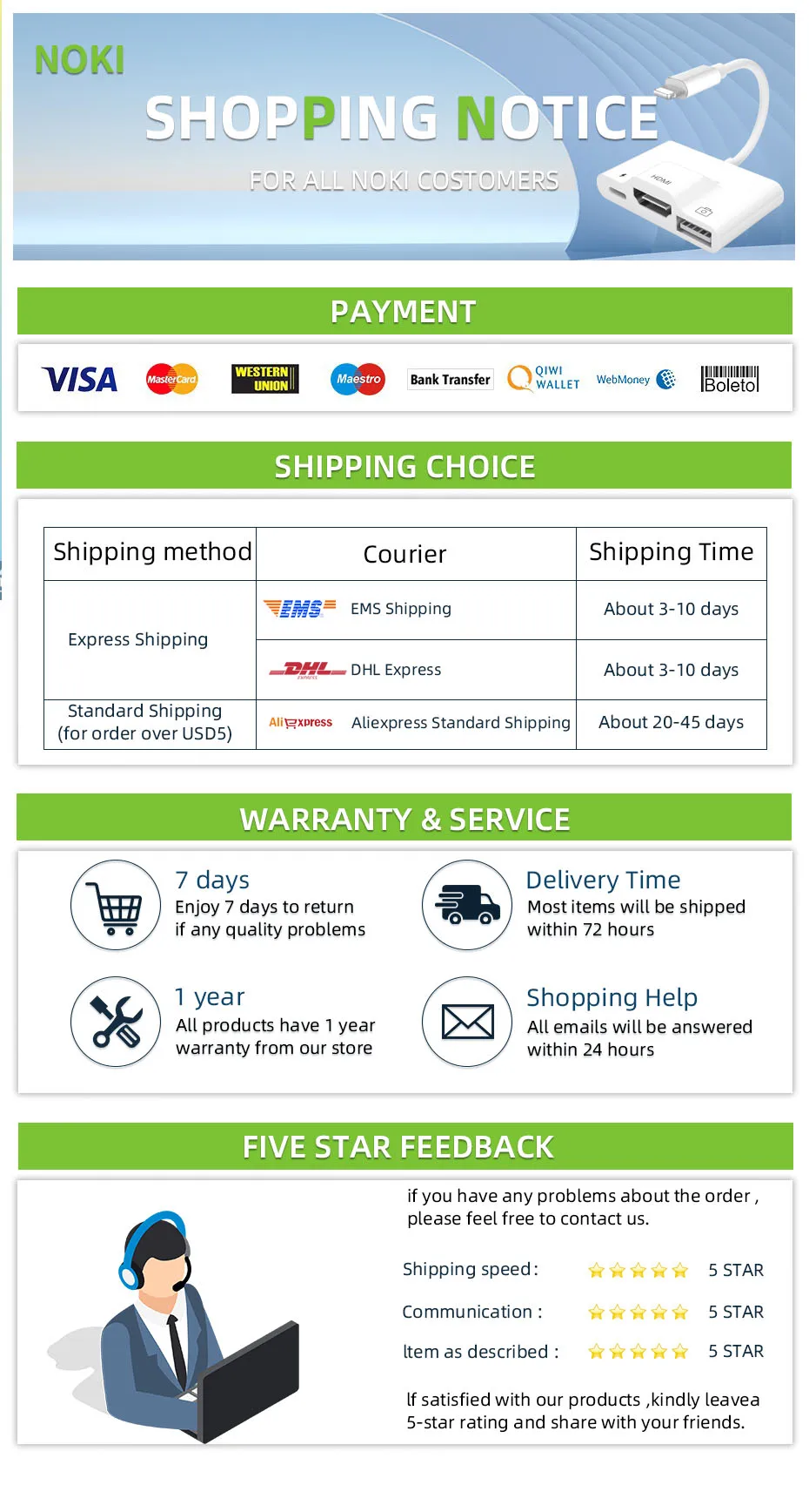 Adaptador de carga y audio para iPhone 1*3 en 1, nuestro servicio amable, garantía de 1 año y garantía de devolución de dinero de 45 días. Si tiene alguna pregunta sobre el divisor de auriculares, no dude en ponerse en contacto con nosotros.