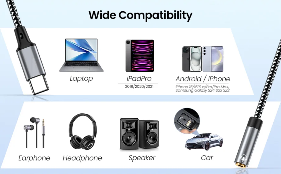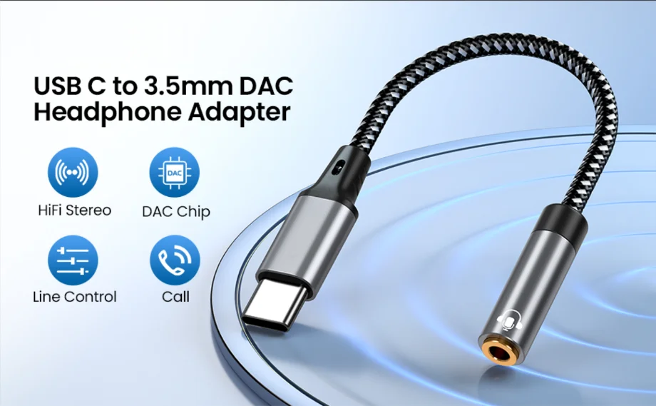 Comprar Adaptador de auriculares tipo C a Jack de 3,5mm, Cable auxiliar de Audio USB C a 3,5 Mm para Macbook Air, Huawei, Xiaomi, Samsung Galaxy S24, S23, S22