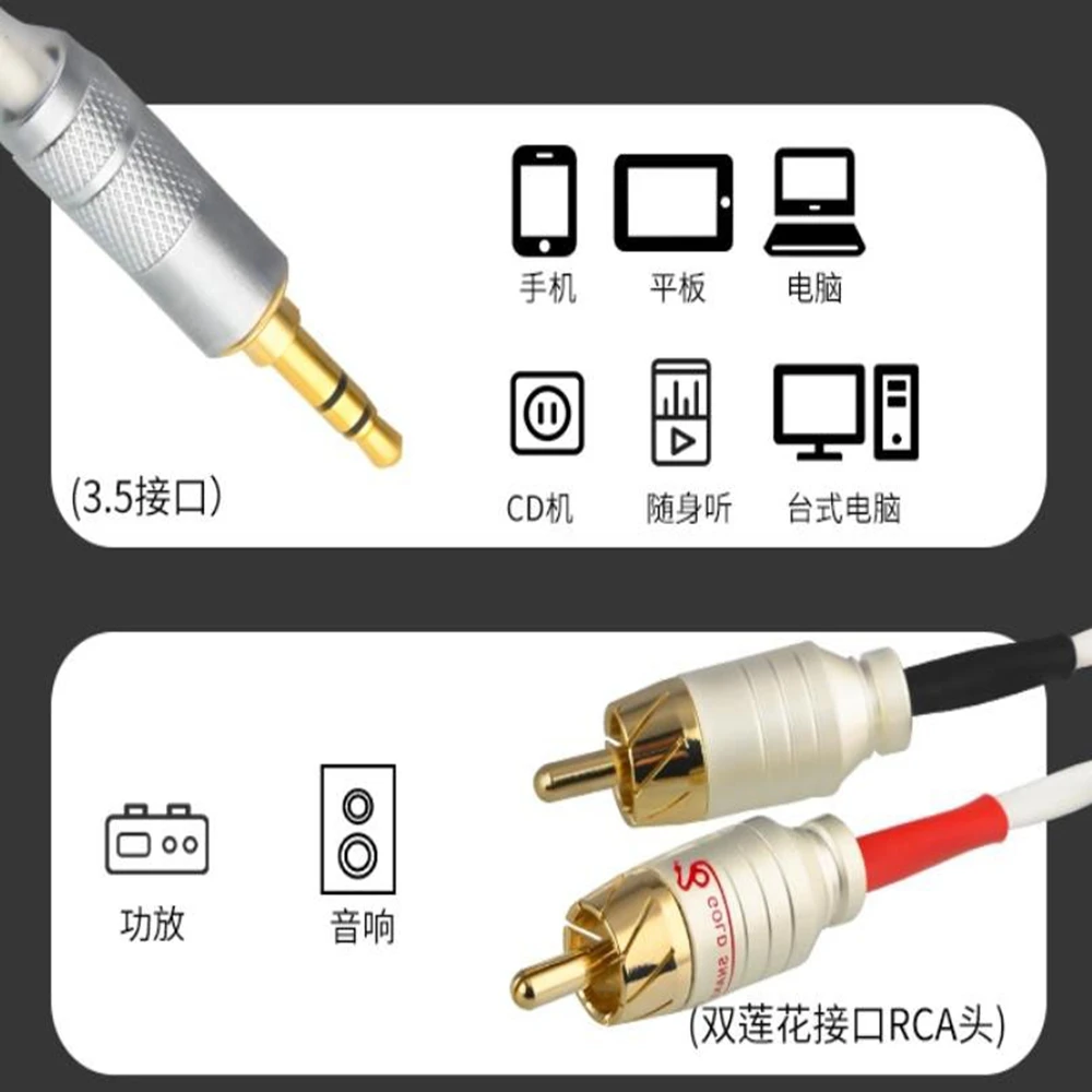 Cable de 3,5 mm a RCA Adaptador auxiliar a 2 RCA de 3,5 mm Cable de audio RCA Cable auxiliar estéreo macho a macho chapado en oro para altavoz estéreo
