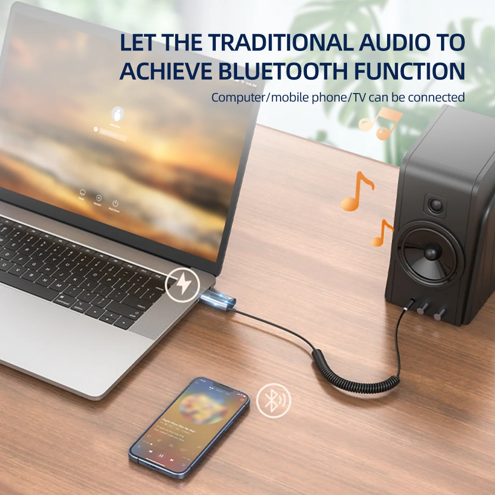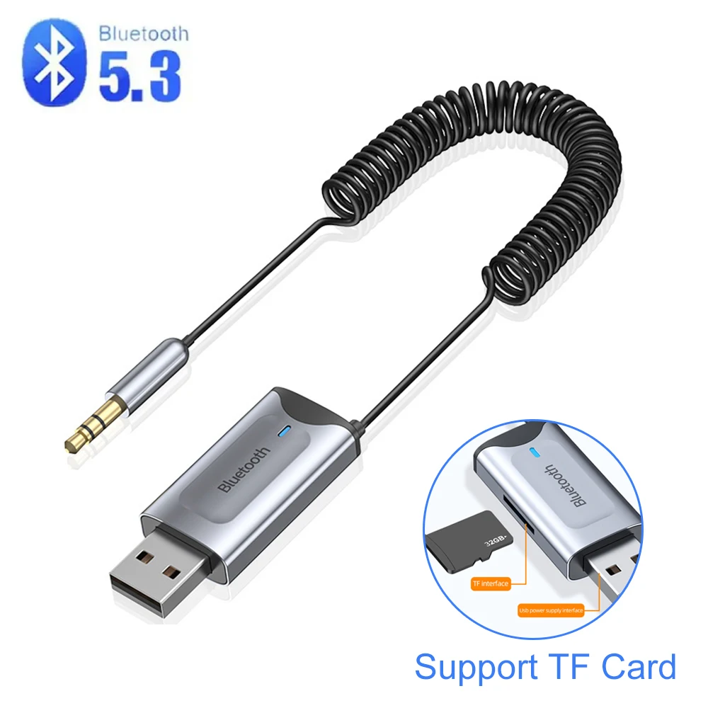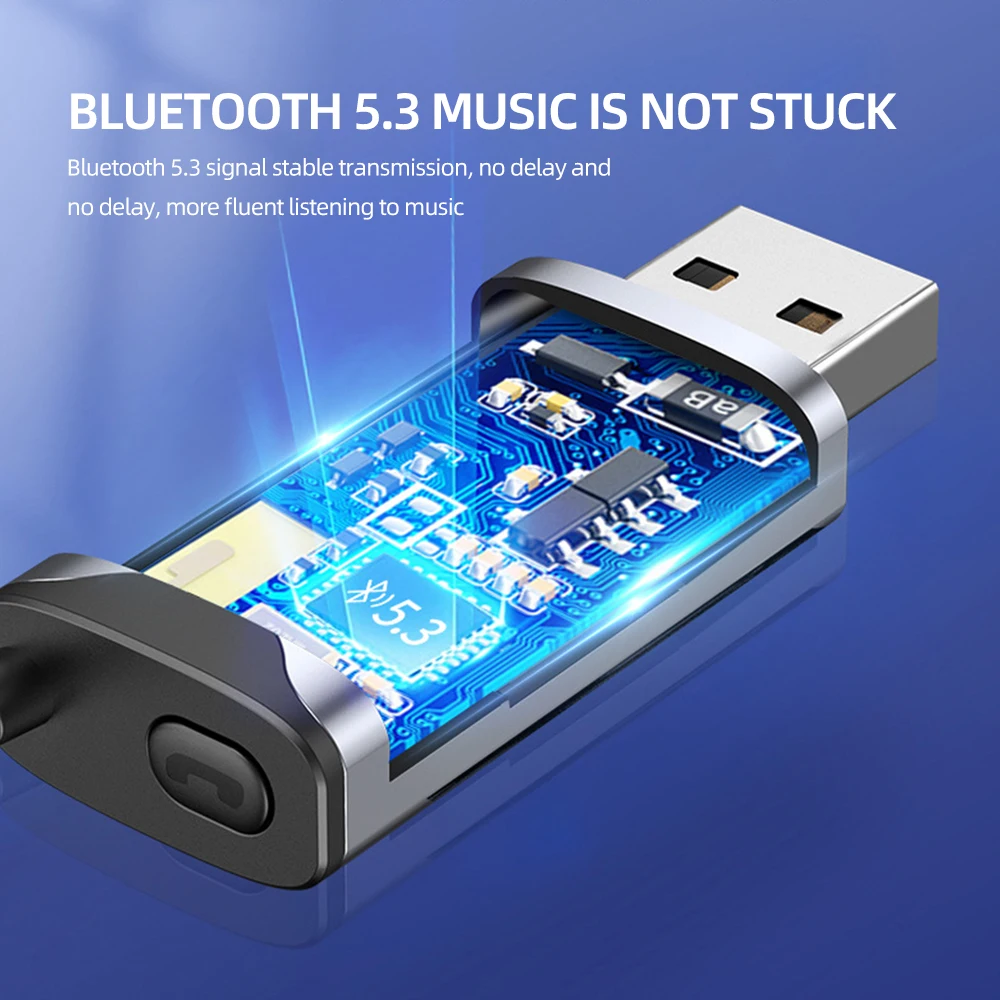 Comprar Adaptador auxiliar Bluetooth Dongle USB a conector de 3,5mm adaptador de Audio inalámbrico para coche receptor Bluetooth 5,3 Kit manos libres para altavoz de coche