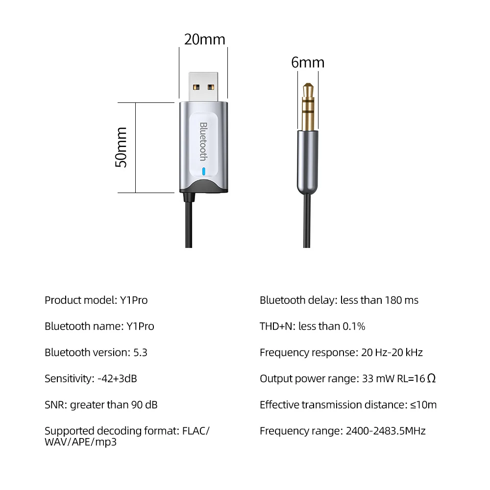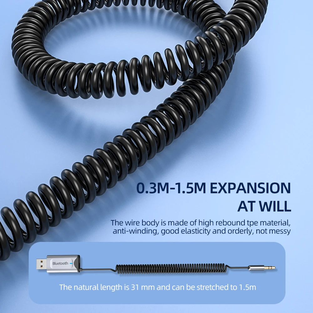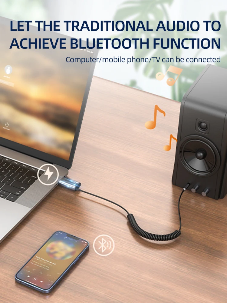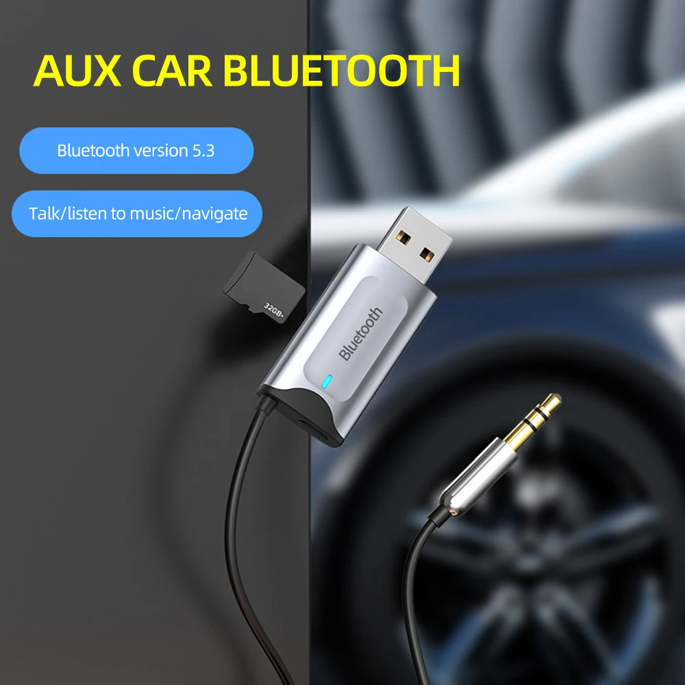 Comprar Adaptador auxiliar Bluetooth Dongle USB a conector de 3,5mm adaptador de Audio inalámbrico para coche receptor Bluetooth 5,3 Kit manos libres para altavoz de coche